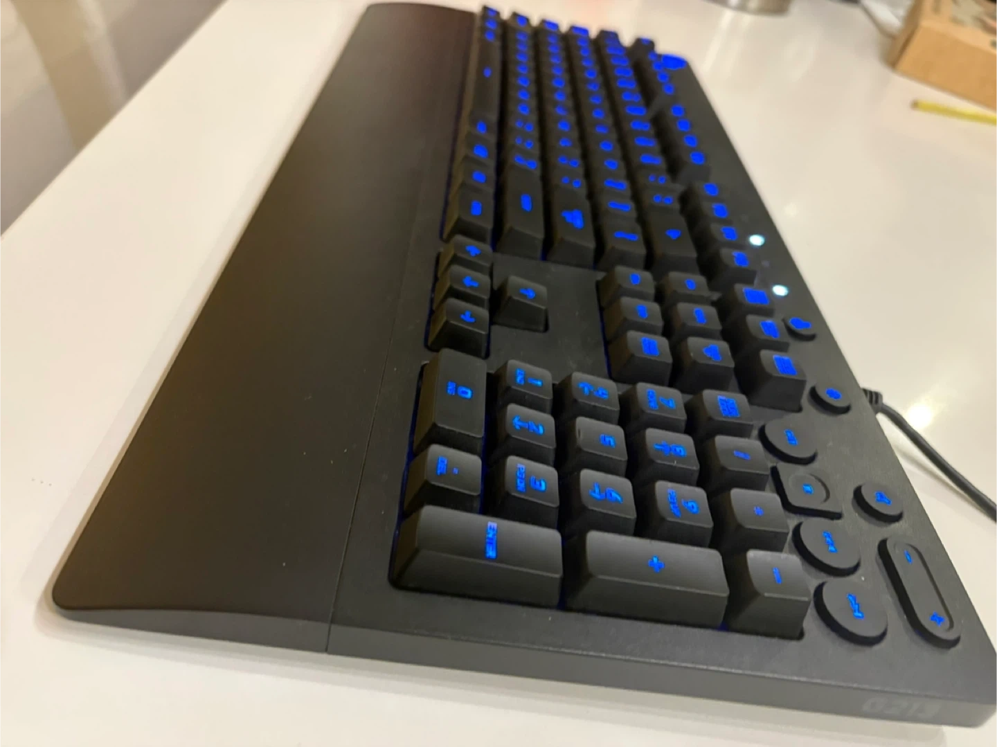 Selling a Logitech G213 gaming keyboard. It's in great shape and ready for a new owner! The keyboard features customizable RGB lighting to match your setup. It's a full-size keyboard, perfect for gaming or work.