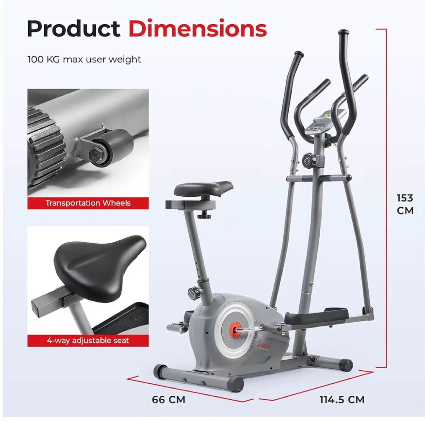 This versatile fitness machine easily transforms between an elliptical and a stationary bike for diverse cardio workouts. It features transportation wheels and a 4-way adjustable seat. Maximum user weight is 100 KG. Sold as is. The resistance tension doesn’t work. Pick up only. Cash only, no e-transfers.