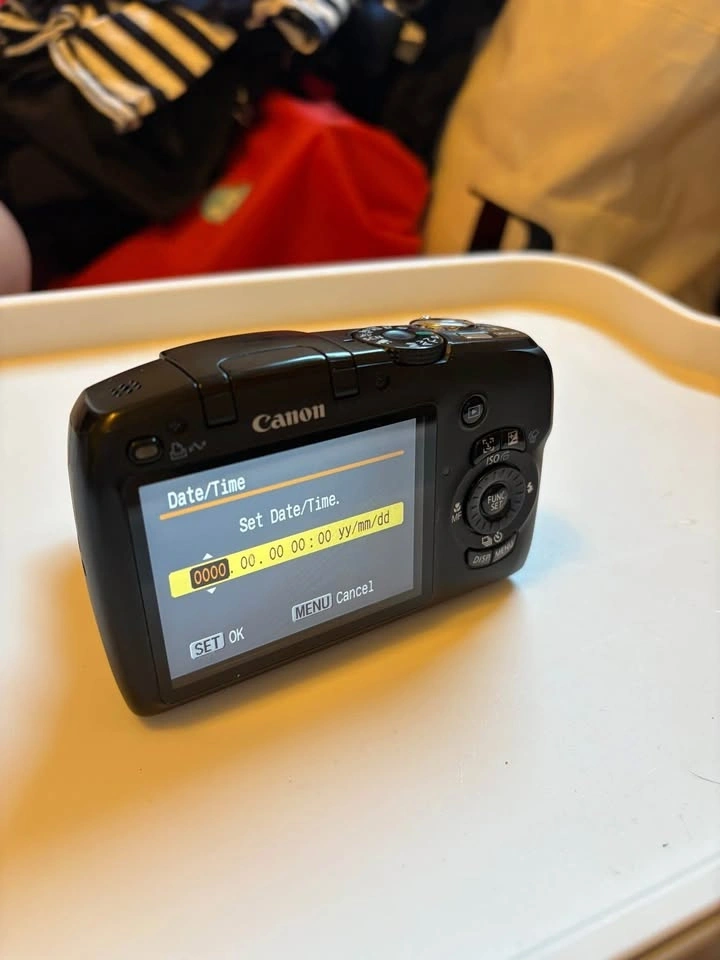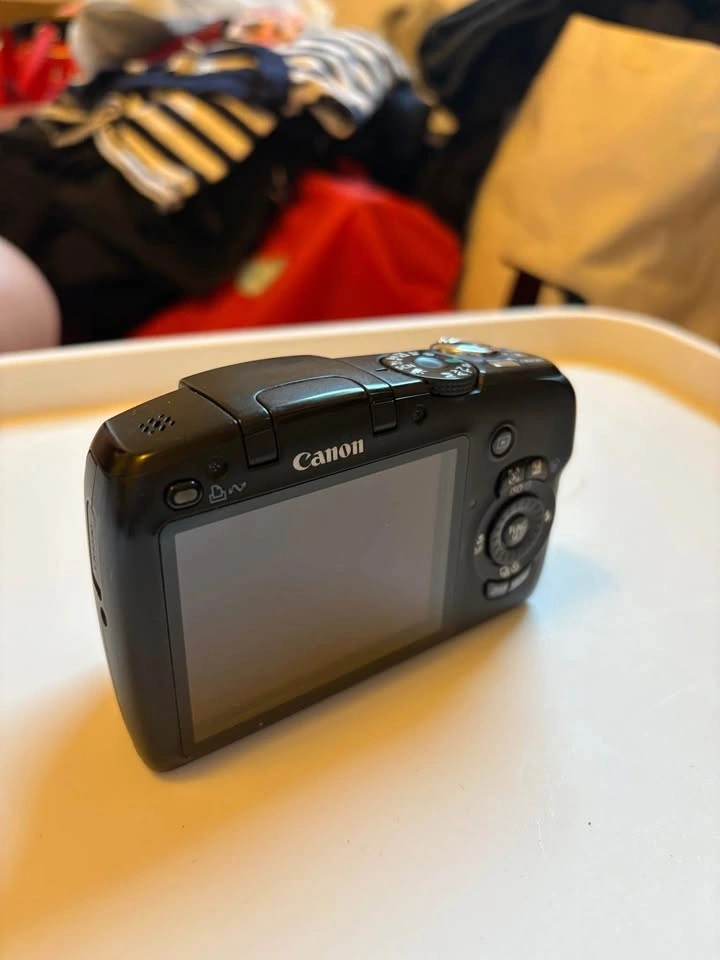 Canon Powershot SX110 IS. Photo samples at the end. Batteries, memory card, and case included. The only flaw is chipping around the lens, but it does not affect the quality of the camera.