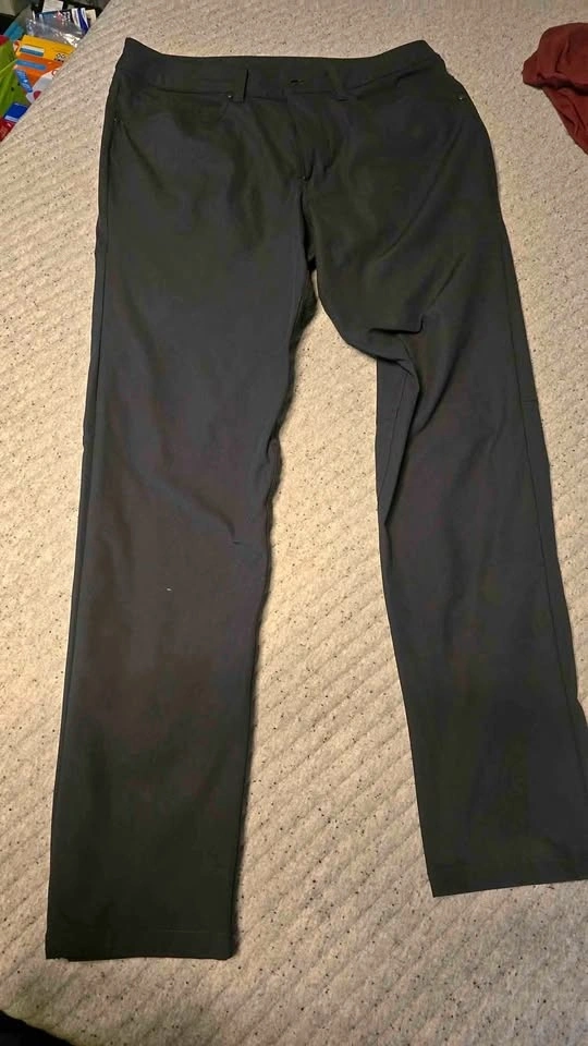 Worn once before I gained a bunch of weight. Lululemon womens dress pant. Size 31 waist, 30" inseam. They are dark grey and in perfect condition.