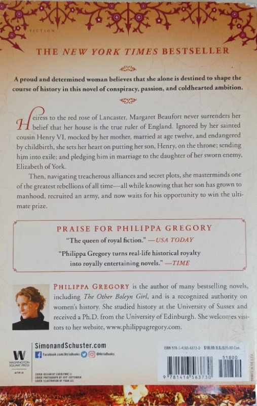 This is a used copy of 'The Red Queen' by Philippa Gregory. It's in like-new condition. The story follows Margaret Beaufort's fierce determination to place her son on the throne of England, navigating treacherous political landscapes and personal sacrifices. Located in Summerside, SE London. Smoke-free home. Message to arrange pick up only.