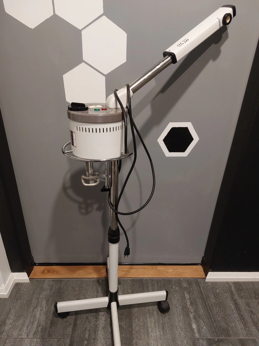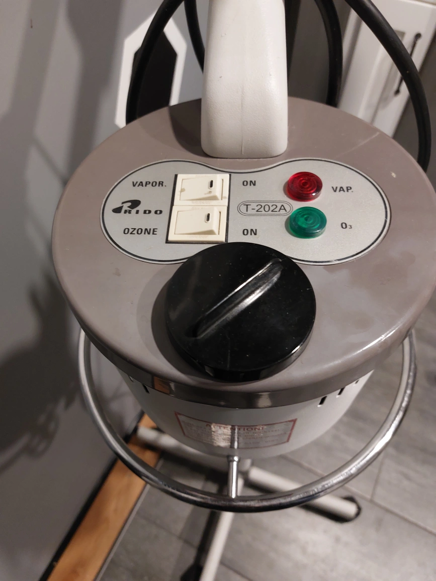 This RIDIO T-202A facial steamer is designed for professional use. It features adjustable height and arm for optimal positioning. This steamer can be used for skin hydration and treatment. It has a Vapor and Ozone function.