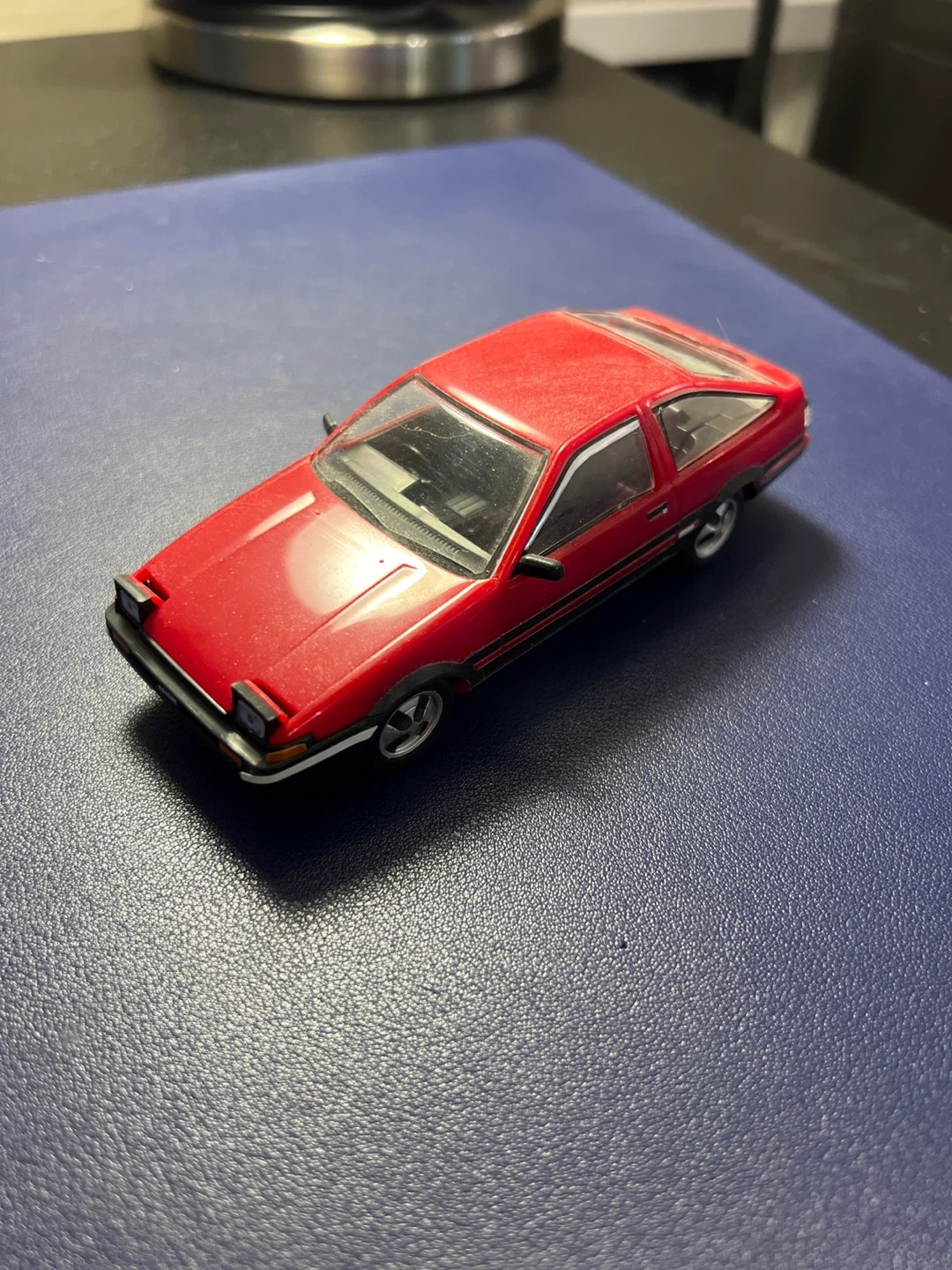Selling a red Aoshima Toyota Sprinter Trueno AE86 model car. It's in great shape and would be a nice addition to any collection