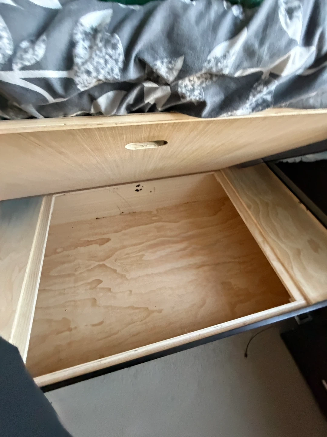 These to box beds are in great condition and have LOTS of storage within both of them. We are selling these because we are moving. The head boards are a border of wood with leather “cushion” in the main area.