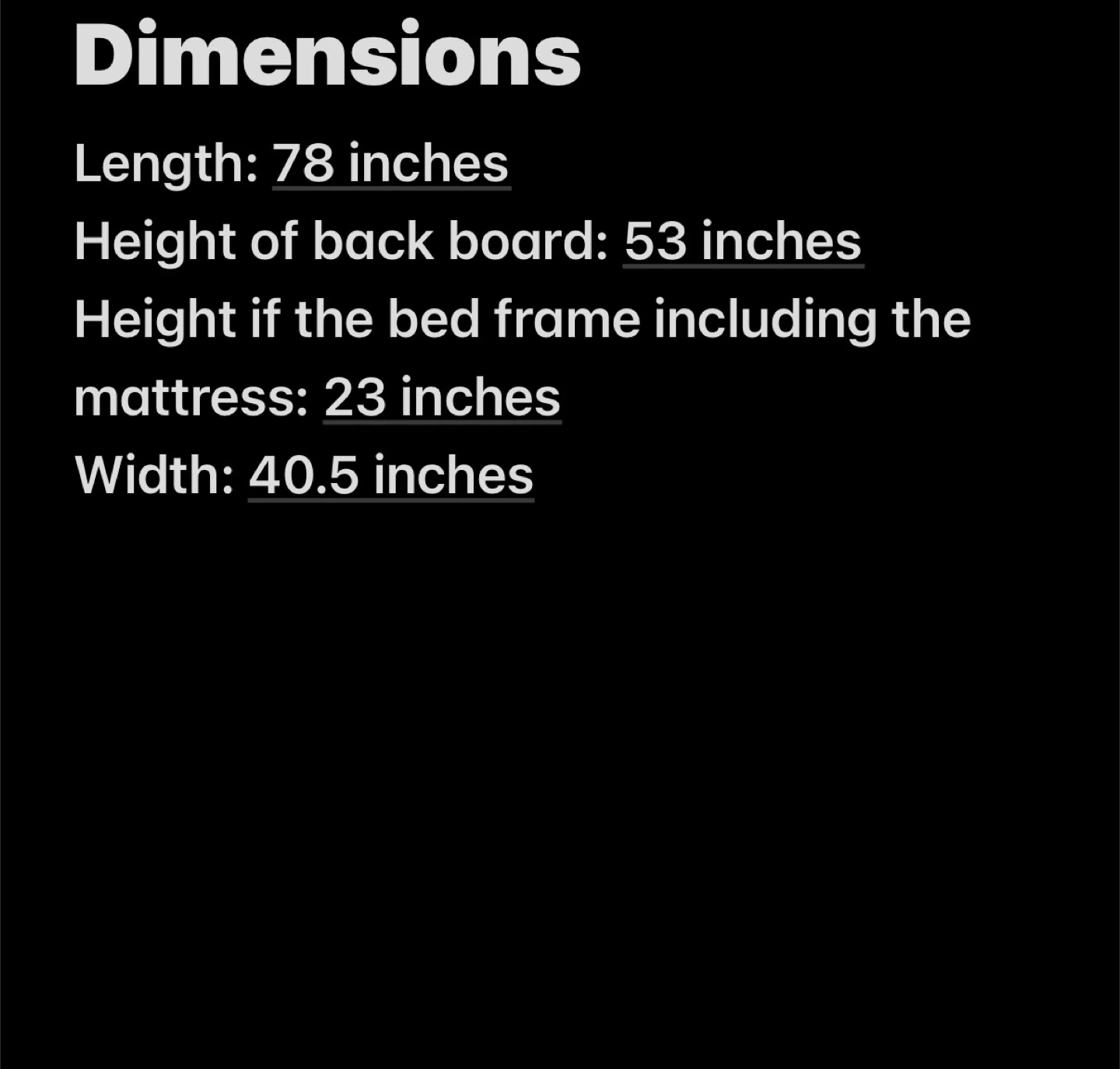 Height if the bed frame including the mattress: 23 inches