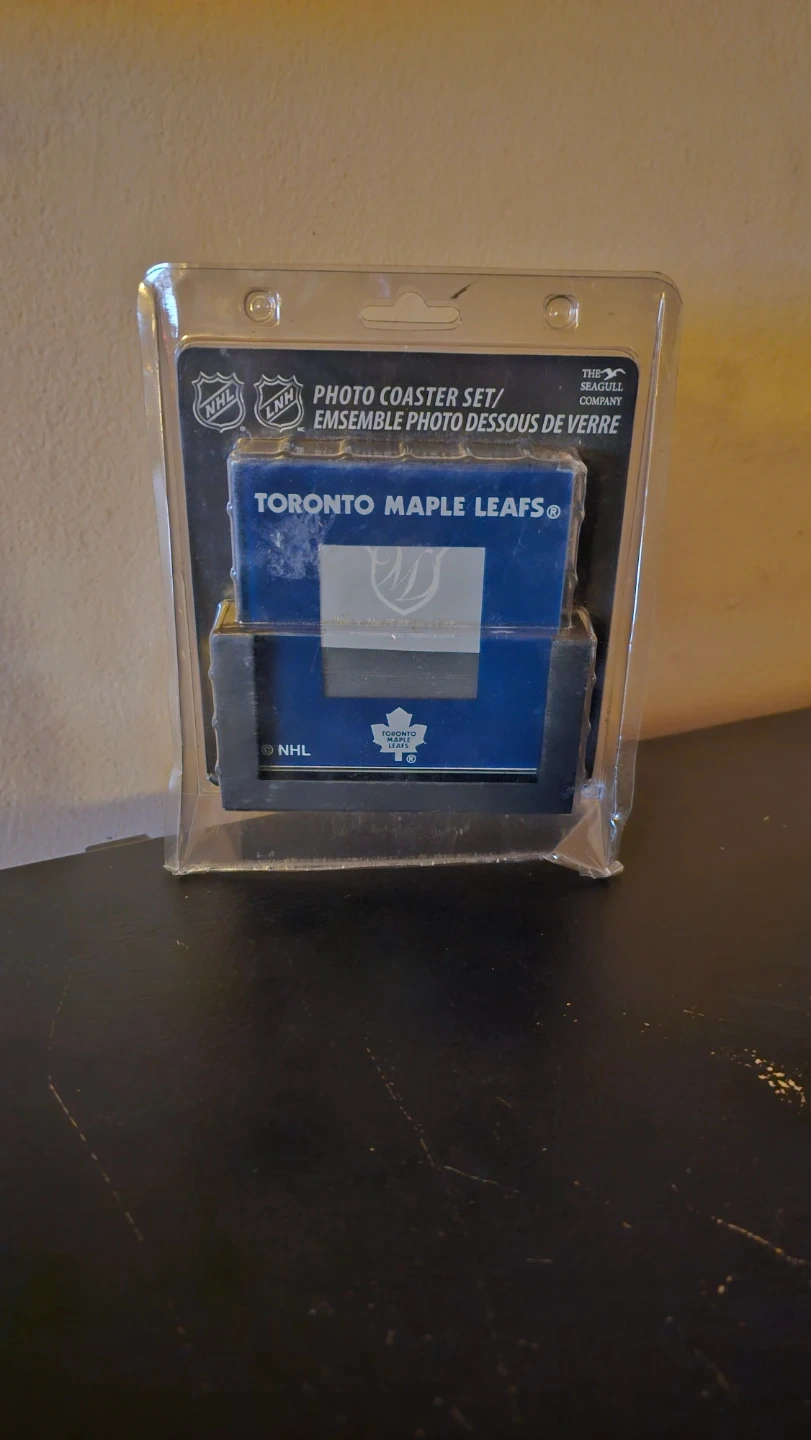 Selling a brand new Toronto Maple Leafs NHL glass photo coaster set still in its original packaging. Thanks and please see my other items.