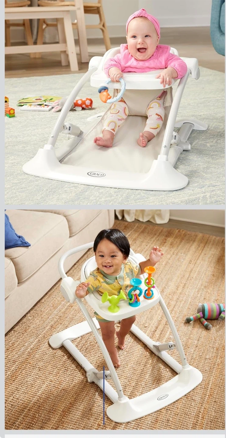 This versatile Graco infant seat easily converts from a rocker to a jumper and high chair. It features a machine-washable seat pad and a snack tray for convenient mealtimes. The seat height adjusts for jumper mode, and it folds compactly for storage.