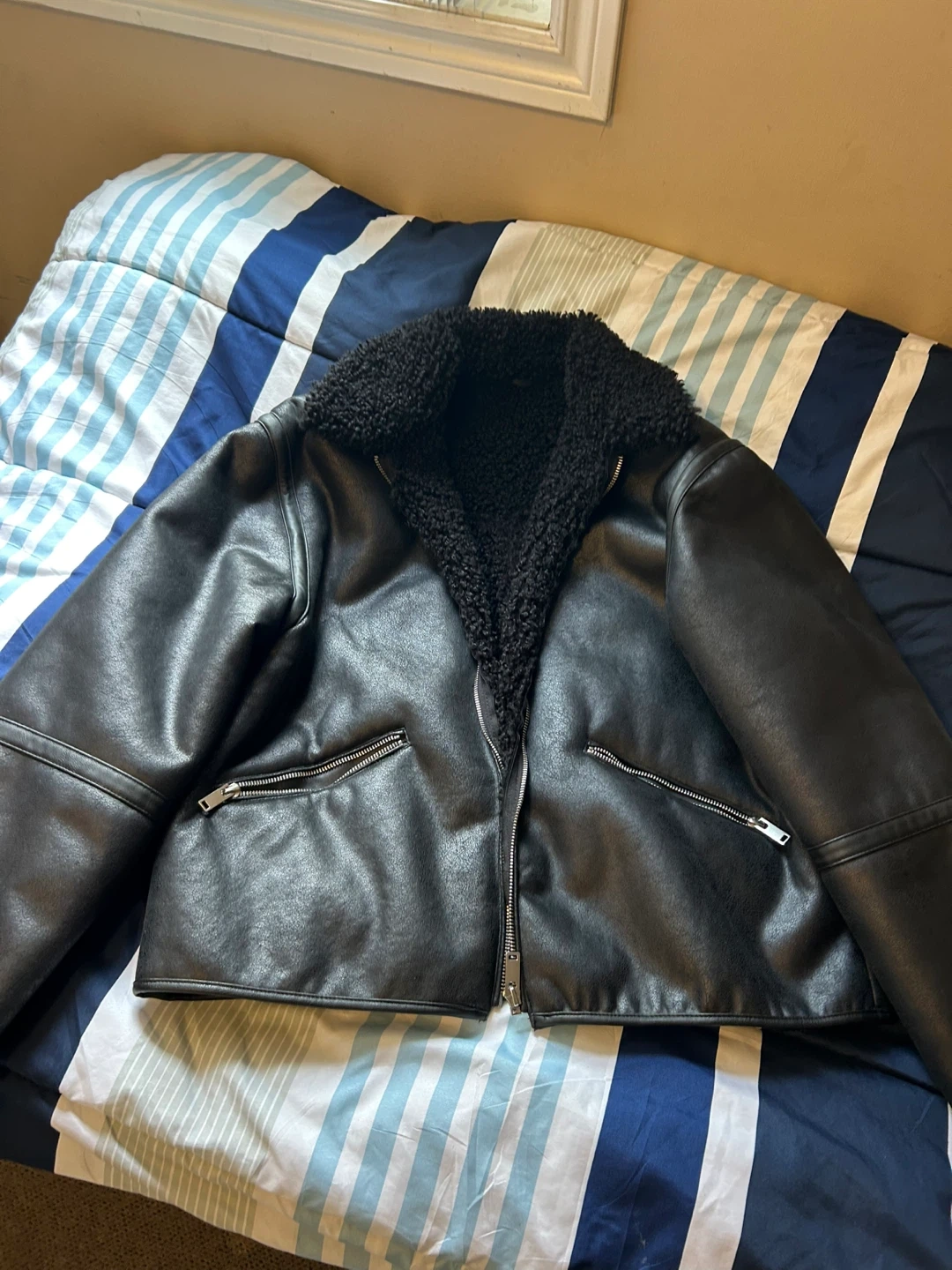 NEW H&M Leather Sherpa Men’s Jacket in Size XL. It’s too big for me and can’t return. Just worn once.