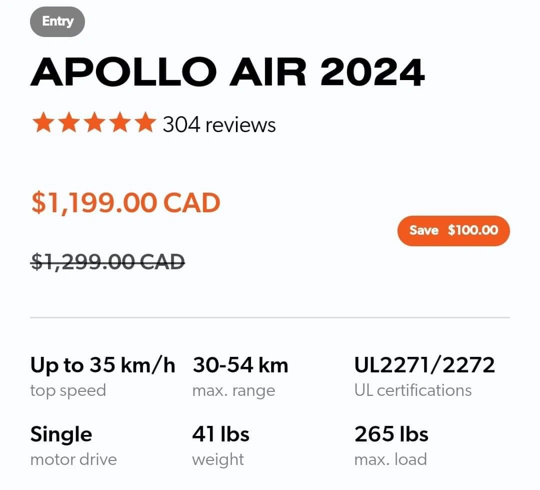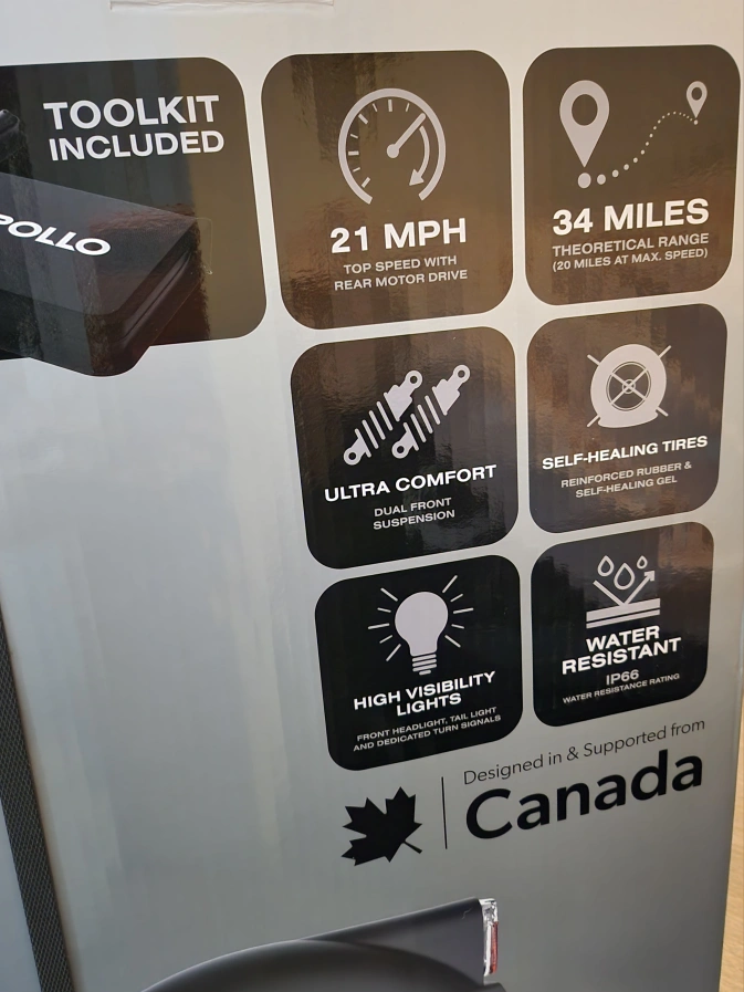 Brand new, unopened. 🏷️$1,200 (vs. retail: $1,342.88 after tax.) 🛍️ Pick-up in Dt Van - Yaletown, or we can arrange a meetup. ℹ️ Product Page: https://apolloscooters.ca/products/apollo-air