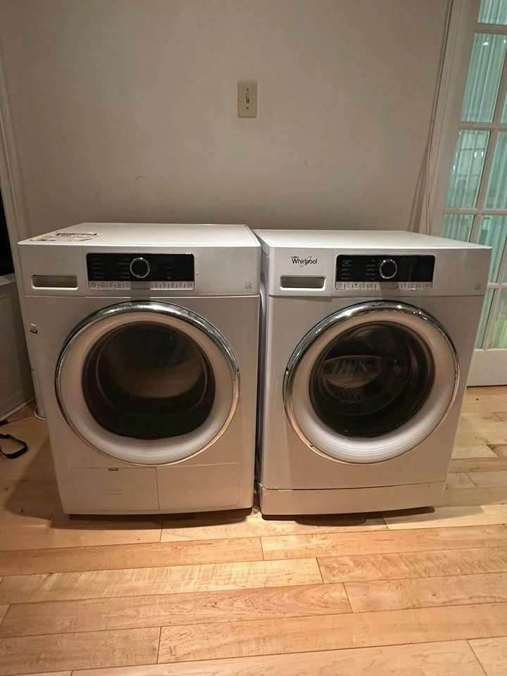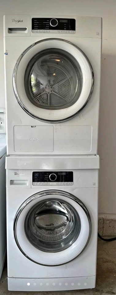 This space-saving Whirlpool stackable washer and dryer set is perfect for apartments and small homes. Front load efficiency with multiple cycles. PRICE IS FIRM. PICKUP ONLY.