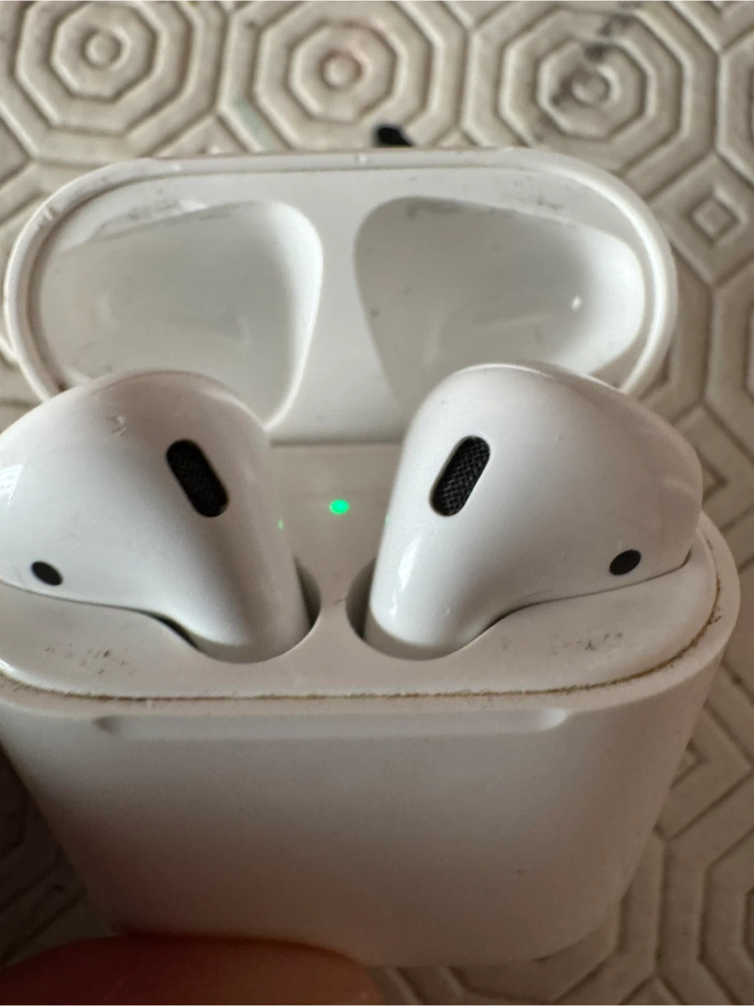 Selling a used pair of Apple AirPods (2nd Generation). They are in good working condition. The charging case is included! There are some minor cosmetic signs of wear.