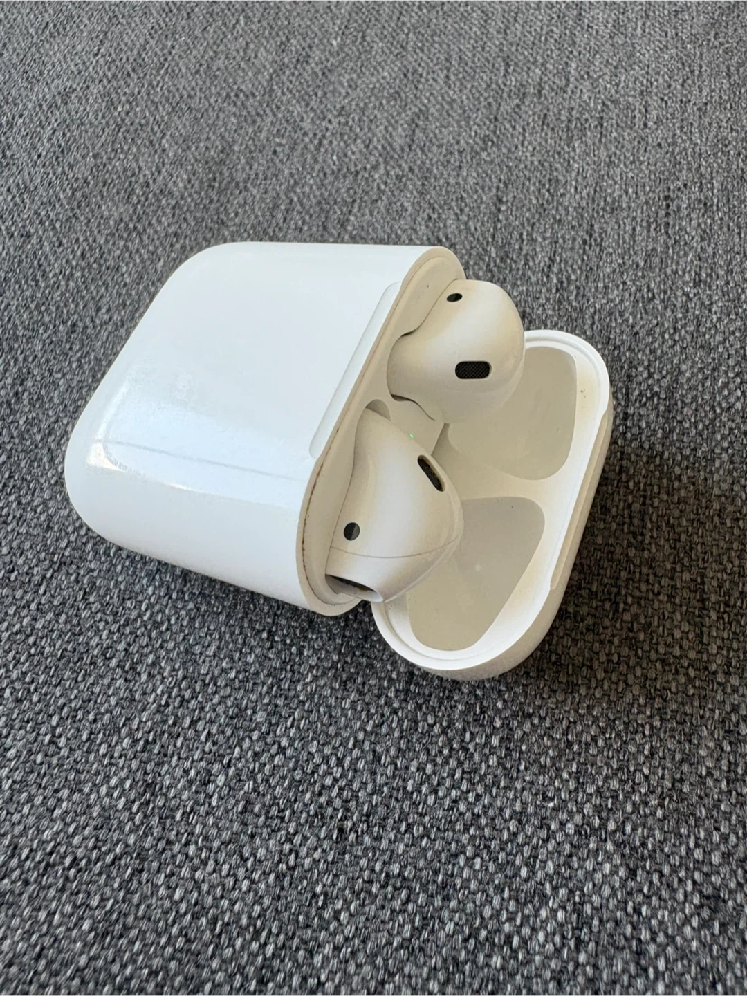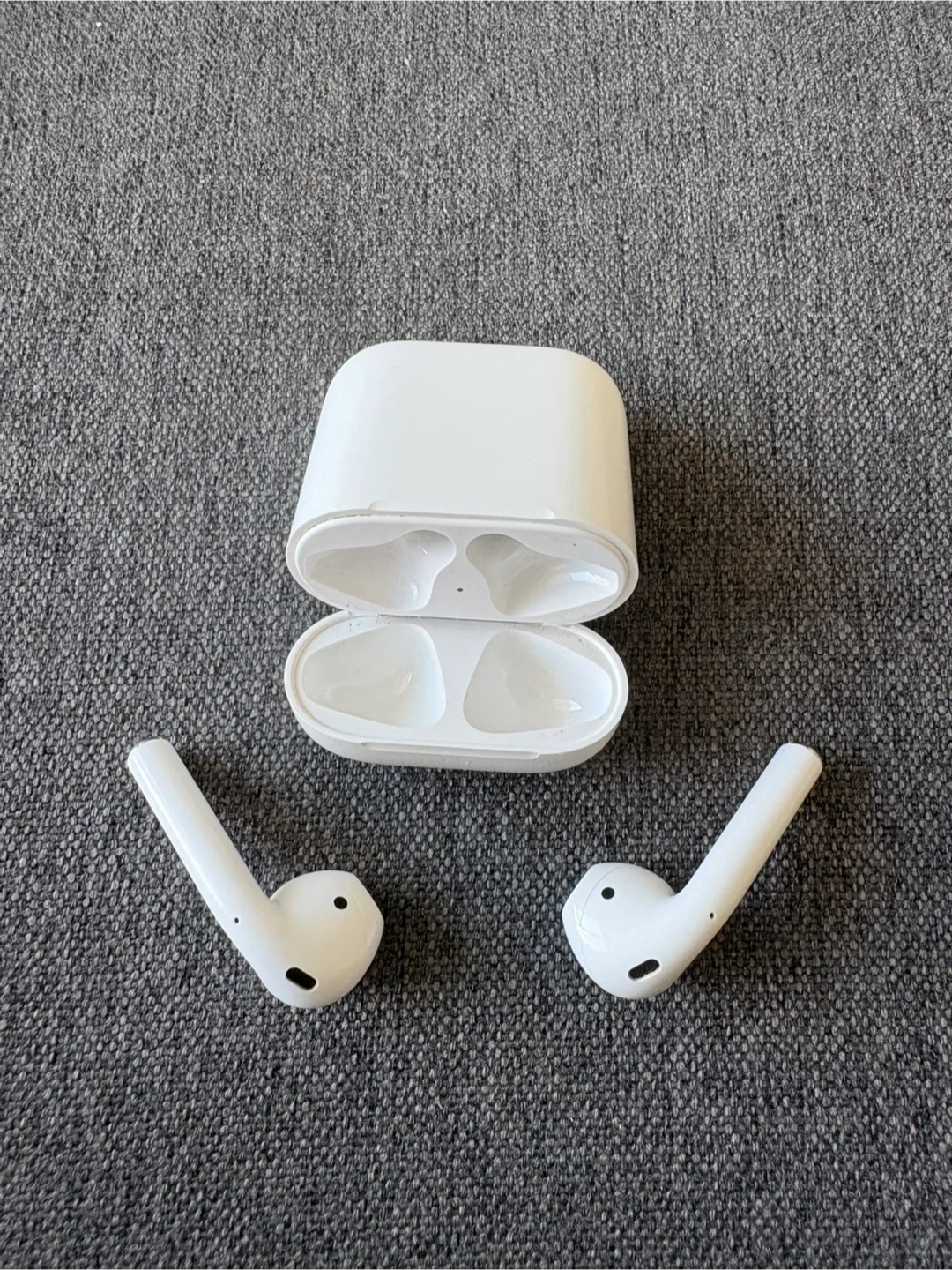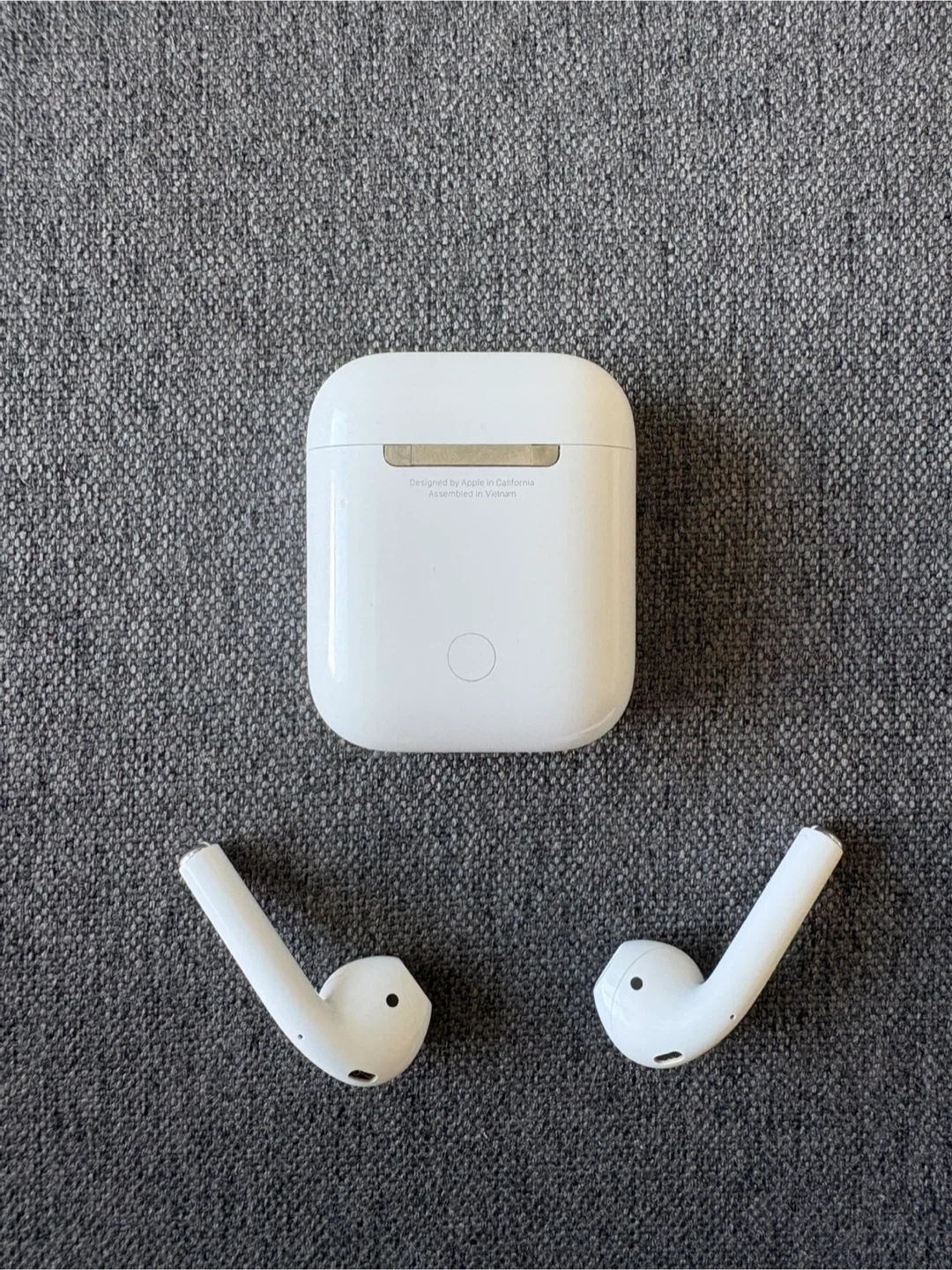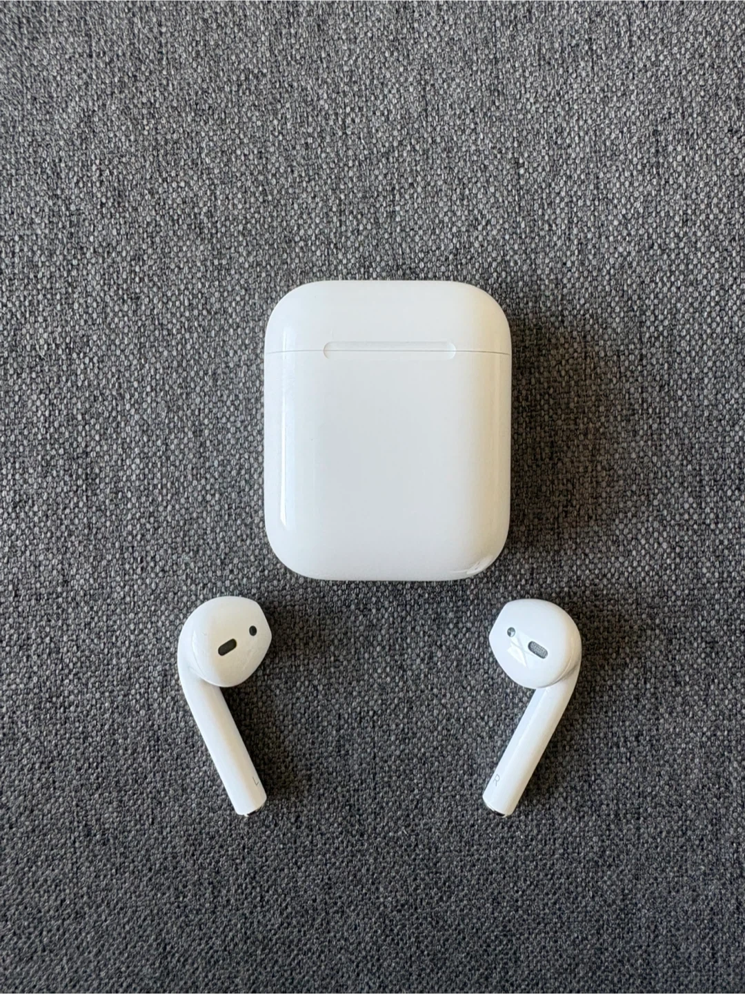 Selling a pair of Apple AirPods (2nd generation). They're in great shape and come with the charging case. Cleaned and sanitized. The battery can handle 2.5-3 hours of listening. The case can recharge airpods ~4-5 times Perfect for listening to music, podcasts, or taking calls on the go!