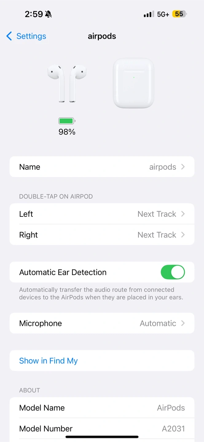 10Selling a pair of Apple AirPods (2nd generation). They are in great condition! The model number is A2031. Feel free to message me if you're interested!