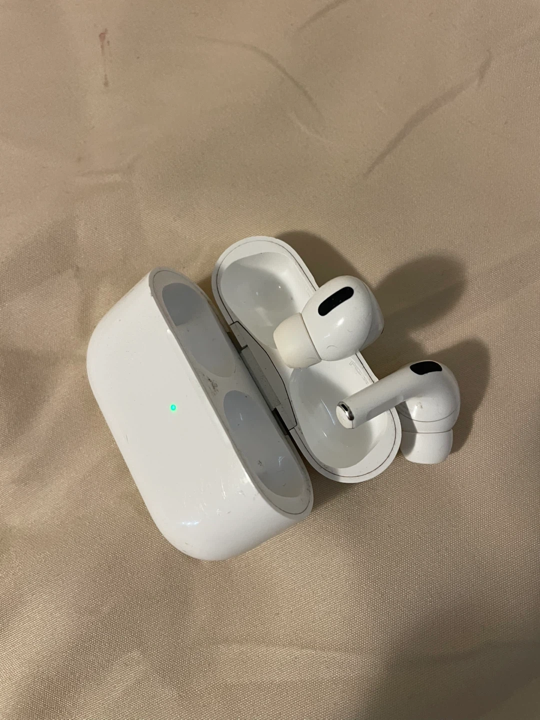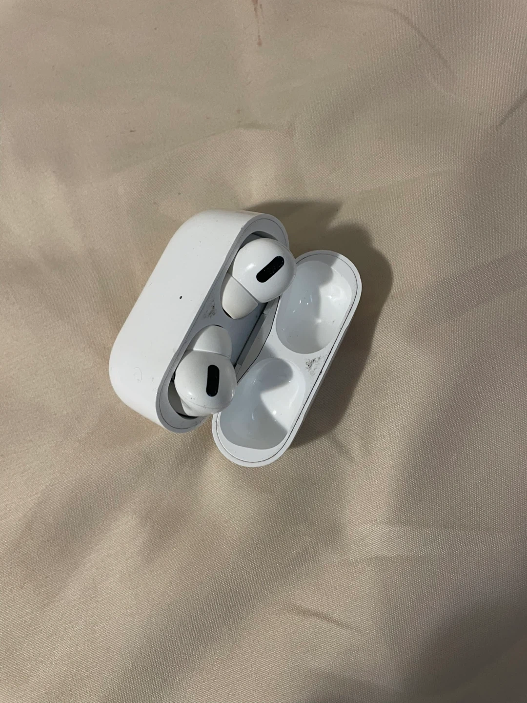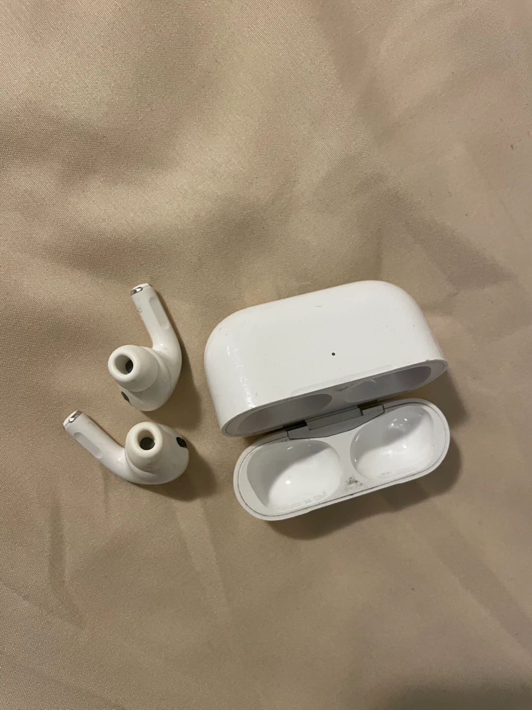 76Selling a used pair of Apple AirPods Pro. They're in good working condition and ready for a new home. Please take a look at the pictures for details on their condition Works good, Left earbud has no issues, but right earbud has static issues