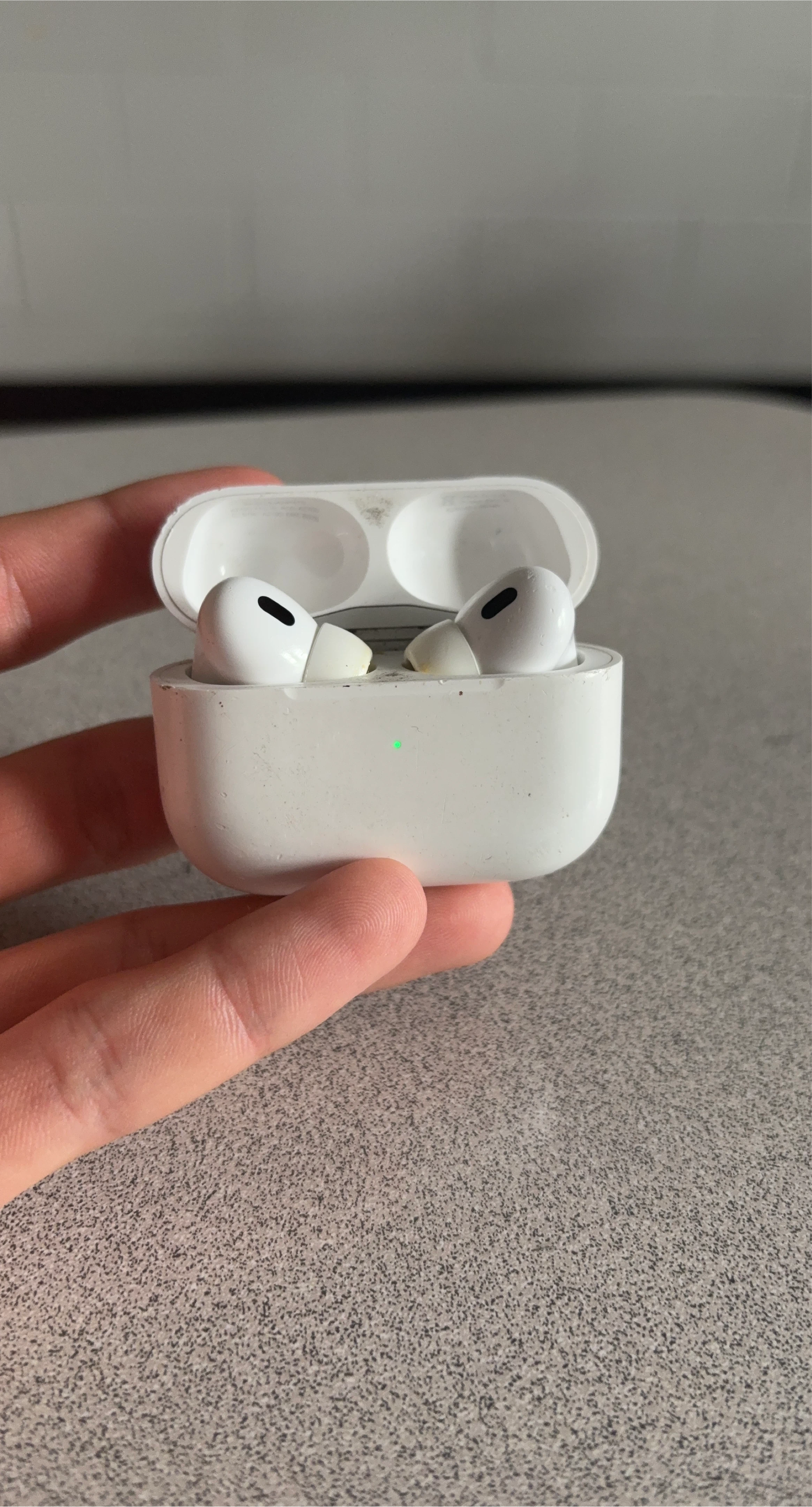 Selling a pair of Apple AirPods Pro. They are in good condition and come with the charging case. These earbuds are perfect for listening to music or podcasts on the go. A little bit dirty on the case but I will try to clean every inch of it. Also willing to negotiate price.