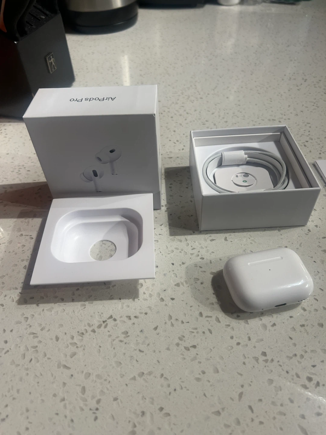 25Selling a set of Apple AirPods Pro (2nd generation). They come with the original box and all included components. Model number is MTJV3AM/A. Feel free to message me with any questions!