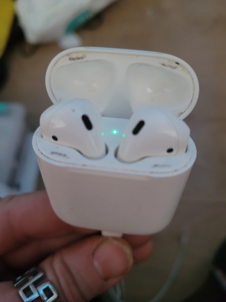 1000+Wireless Apple earbuds, charging case included. Tried and tested in great working condition Apple Airpod 1st Gen Noise cancelling Serial Code FWYXNAJPH8TT Reason for Selling: I prefer wired headphones **** Cash Only **** **** Pickup Only **** **** No E-transfers **** **** Serious Inquiries Only/ Serious Offers Only ****