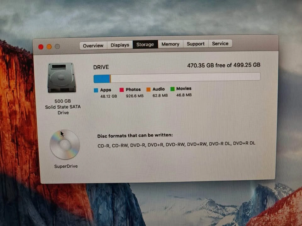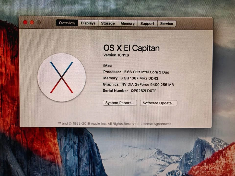 28Specs: Storage: 500 GB Processor: 2.66 GHz Intel Core 2 Duo Graphics: NVDIA GeForce 9400 256 MB Memory: 8 GB 1067 MHz DDR3 Serial Number: QP9262LDOTF
