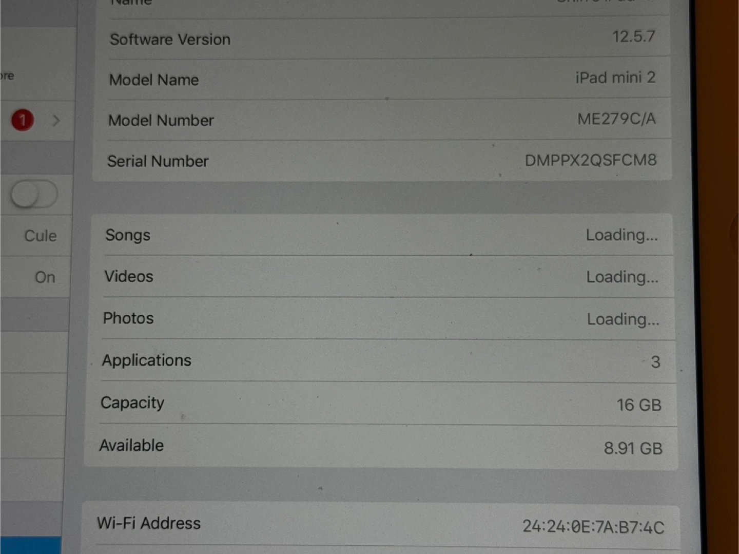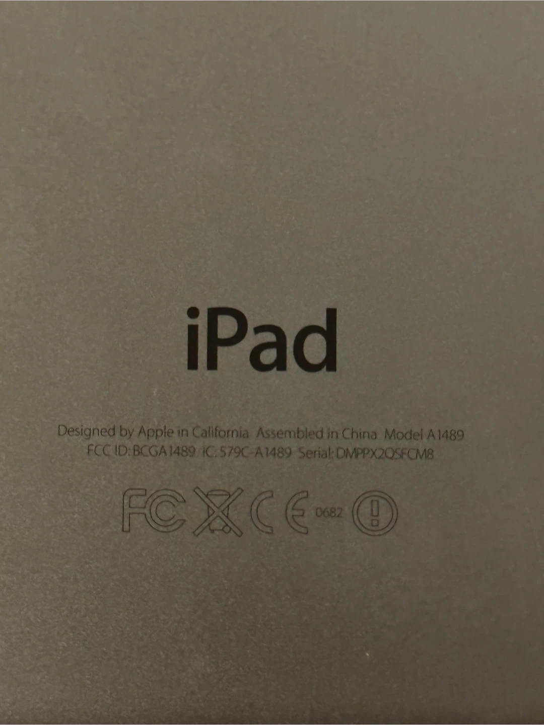 104Selling a used Apple iPad Mini 2 (silver). It comes with Apple genuine case/stand. There is a crack on the screen, but it is not on the screen and still fully functional. Model: A1489 Storage: 16GB
