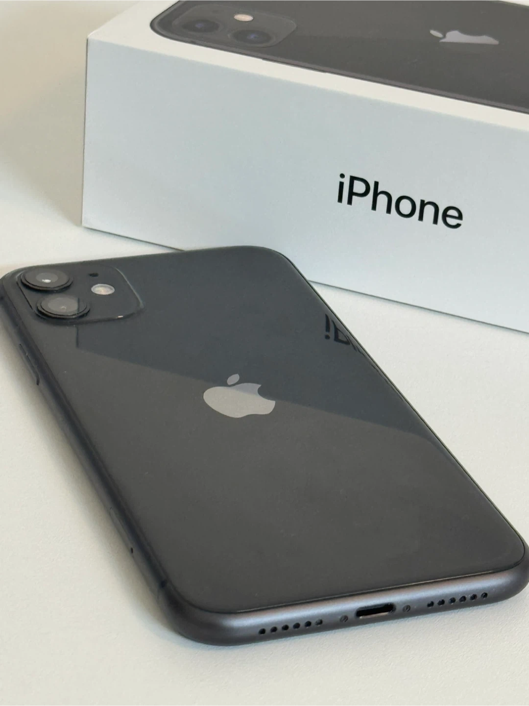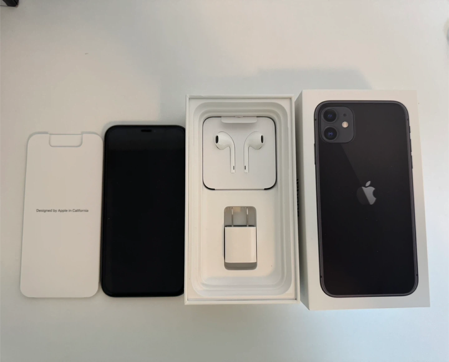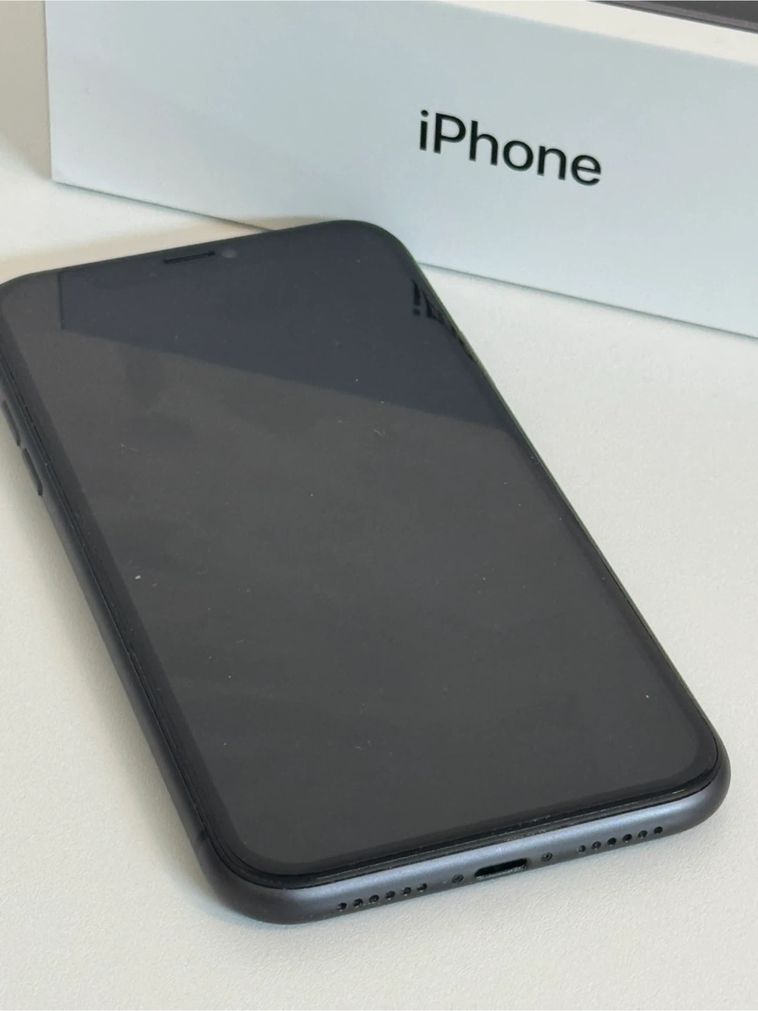 Selling a black iPhone 11. It comes with the original box, charger, and headphones. Please note that the battery health is at 72%.