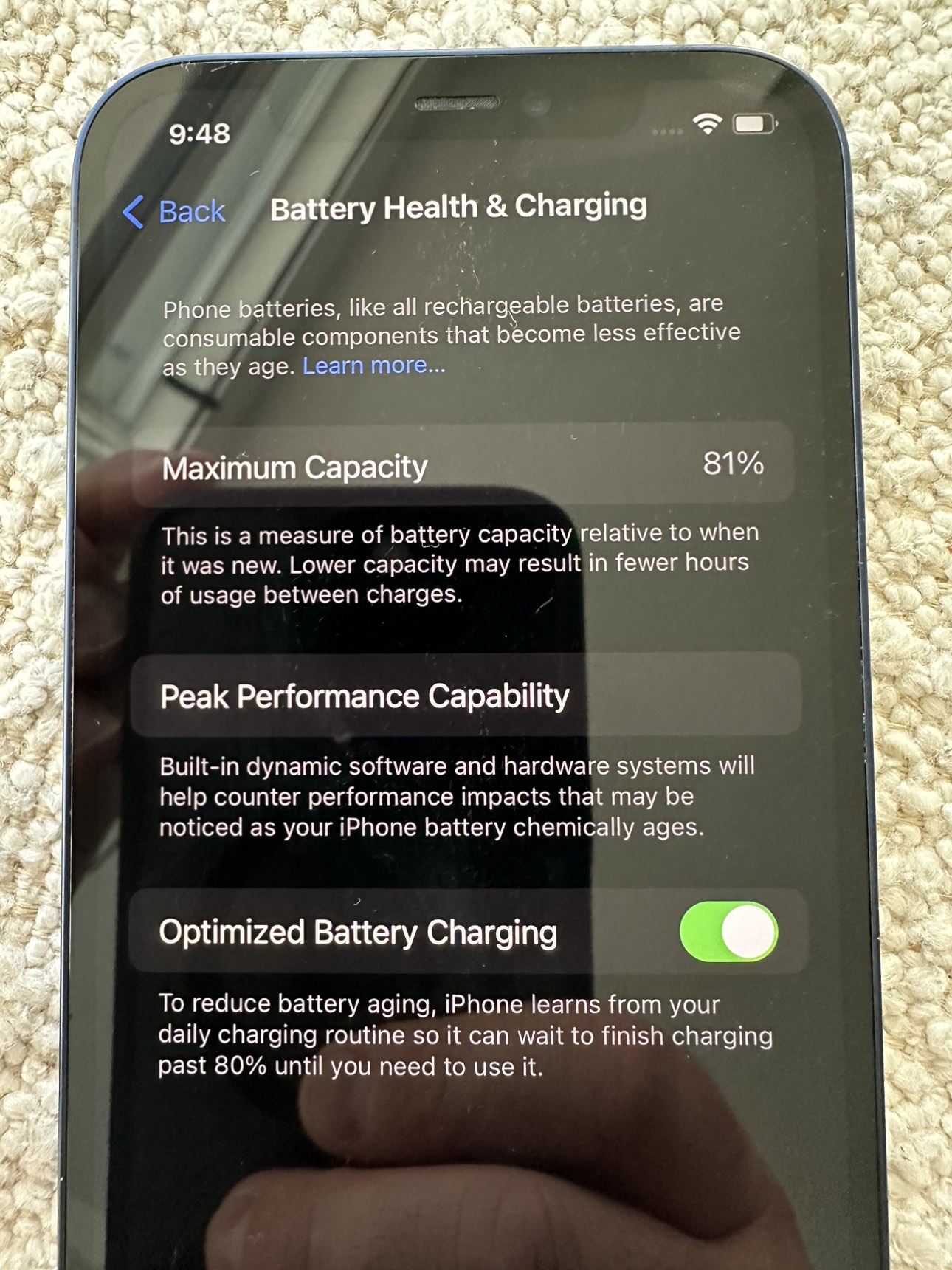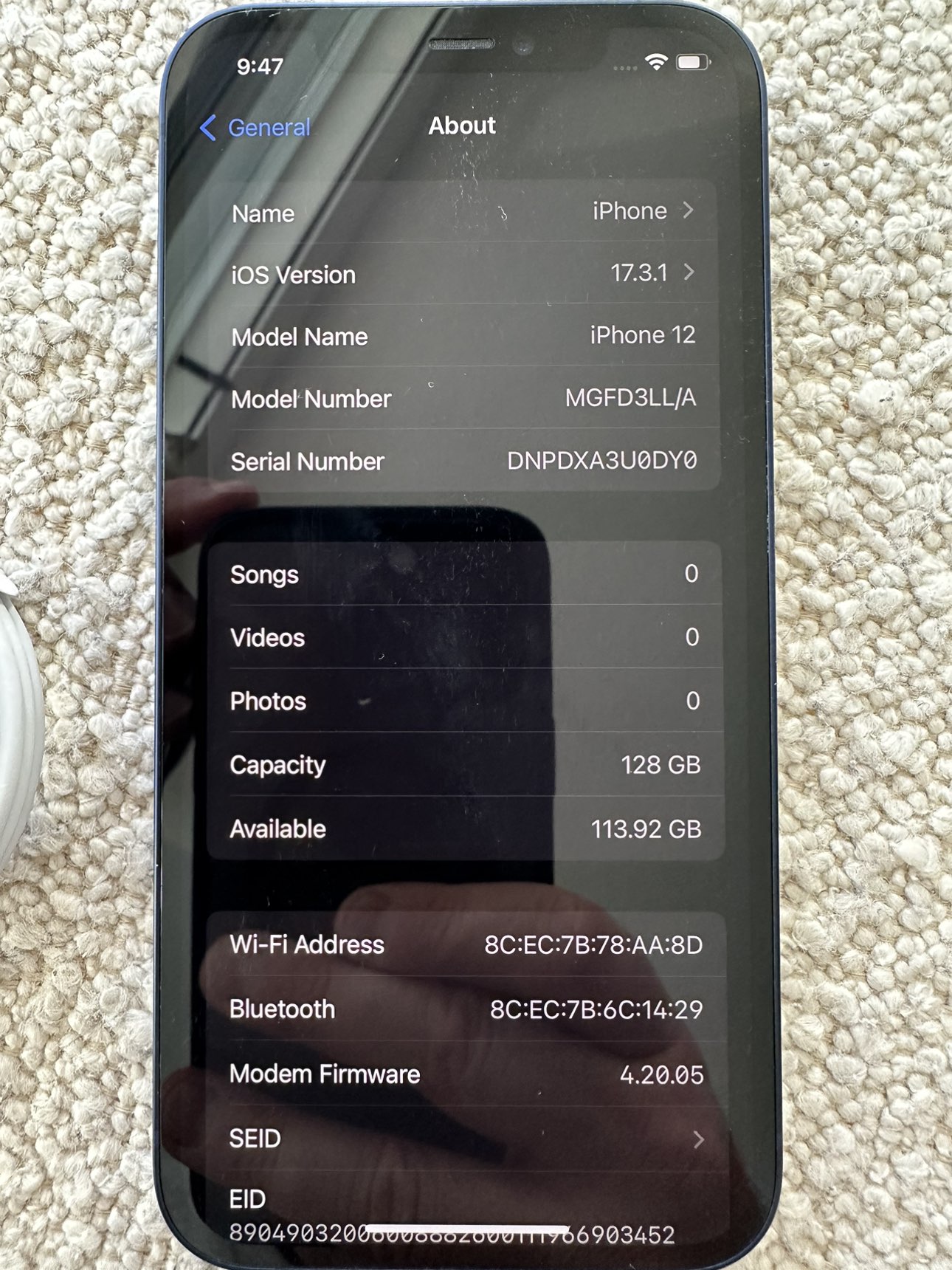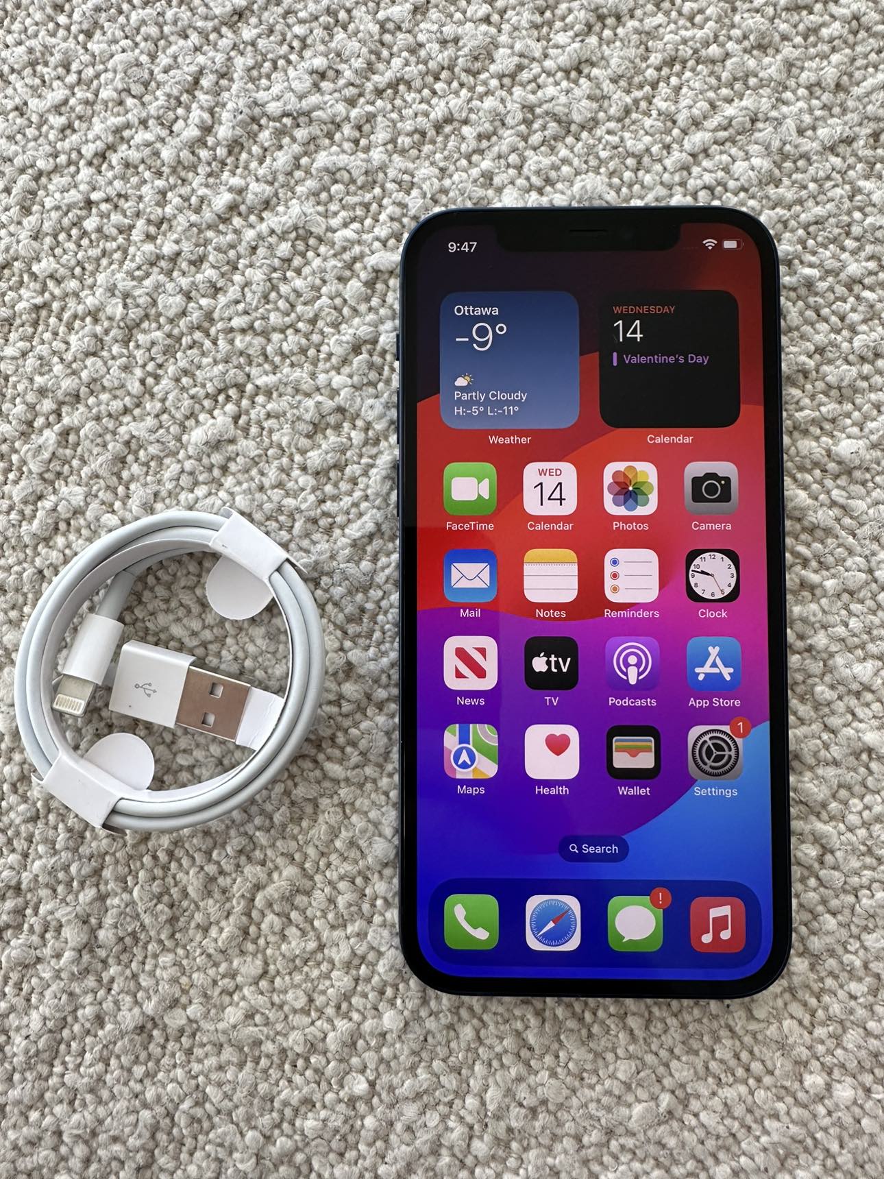 44Apple iPhone 12 Blue 128GB Phone and USB-lightning only Unlocked 9.5/10 body condition Pick up Only 16 Brookers Lane, M8V0A5
