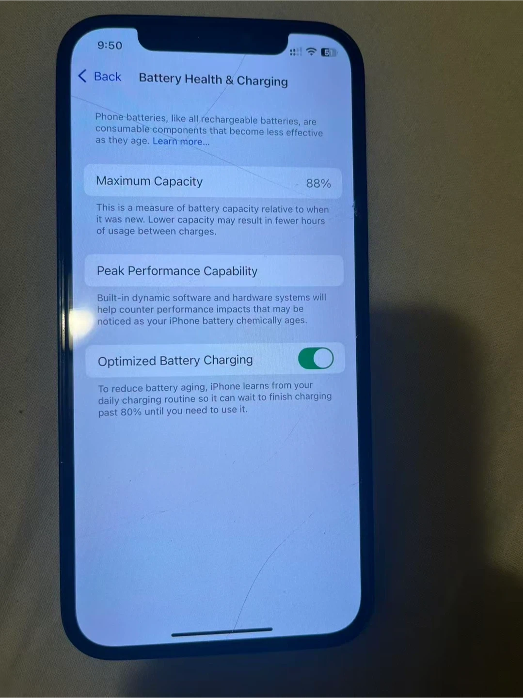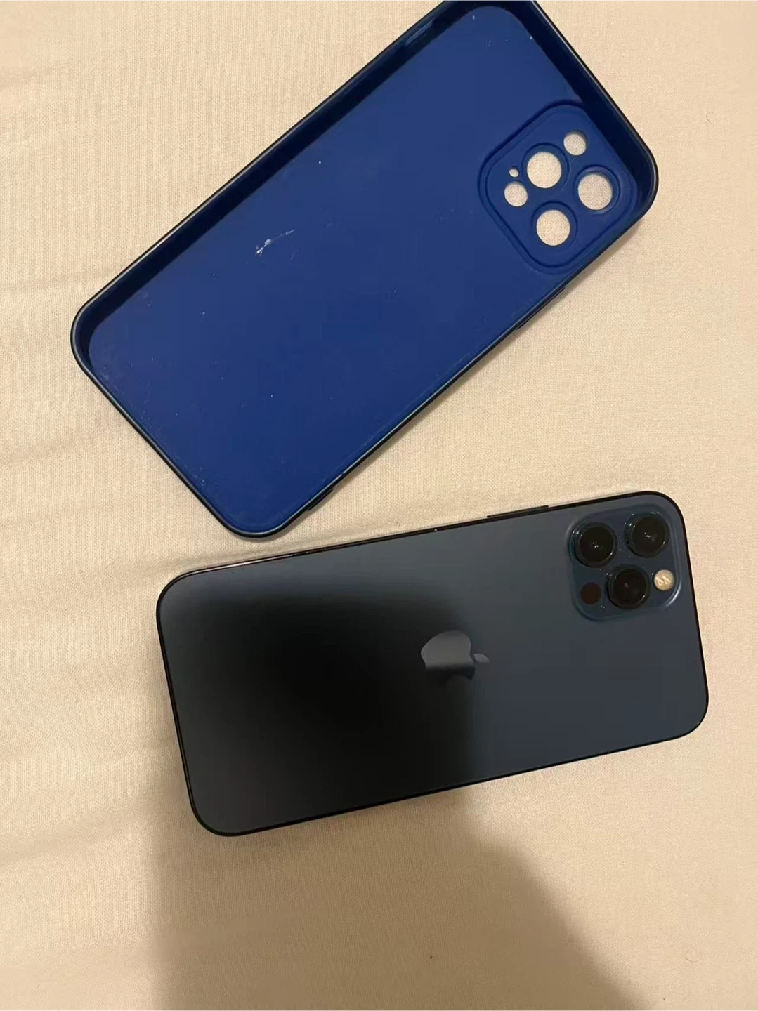 146Selling an Apple iPhone 12 Pro in blue. The battery health is at 88%. Comes with a blue phone case as well
