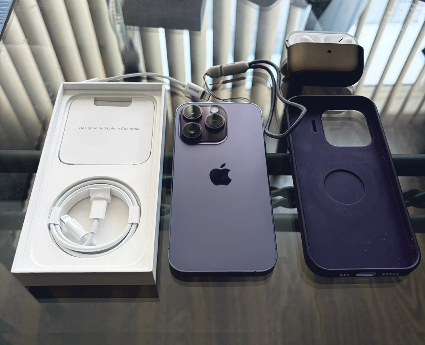 33Selling an iPhone 14 Pro in great condition, along with a pair of AirPods Pro and a phone case! The original box and charger are included. Mint condition.