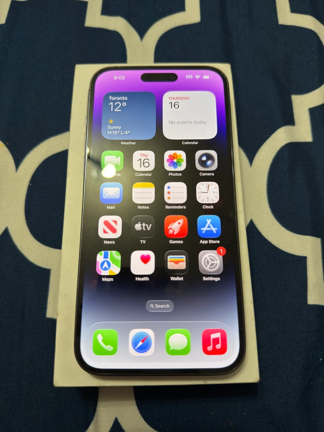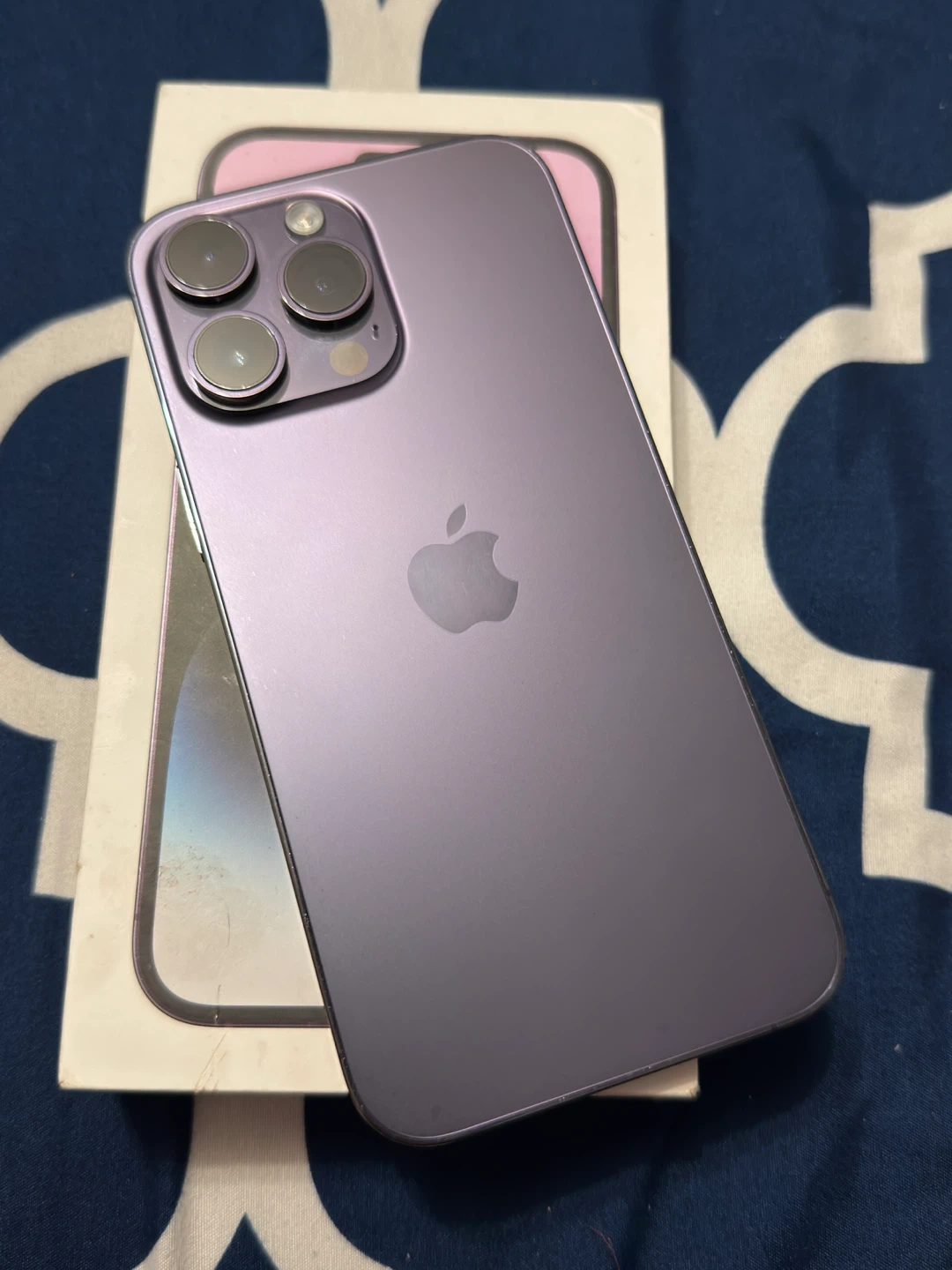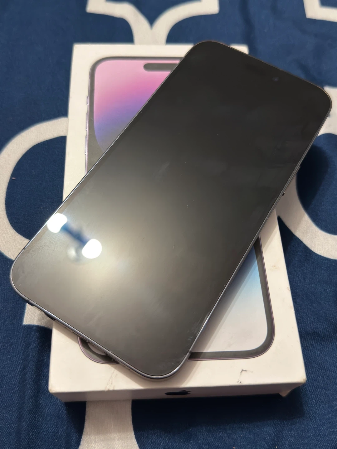 Selling my iPhone 14 Pro in deep purple! It's in great condition and comes with the original box. This phone has been well taken care of and is ready for a new owner. Feel free to ask any questions!