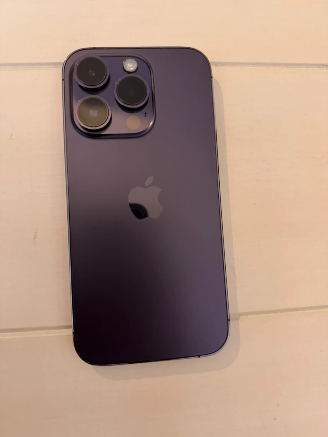10Selling an Apple iPhone 14 Pro 256GB in Deep Purple. It's in great condition! Always kept in a case. Comes with the Original Box,charging cable and cases