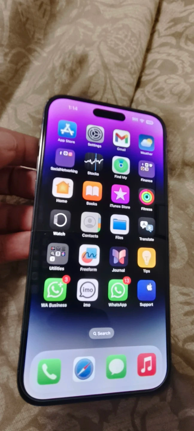 20Selling an Apple iPhone 14 Pro max.5g and 128gb It's in good condition.battery health 95% everything original condition unlocked for all carriers Mobile with box No cable