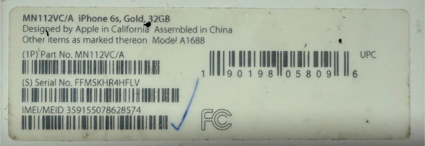 60unlocked Apple iPhone 6s in gold with 32GB of storage. It comes with the original box. Model number is MN112VC/A.