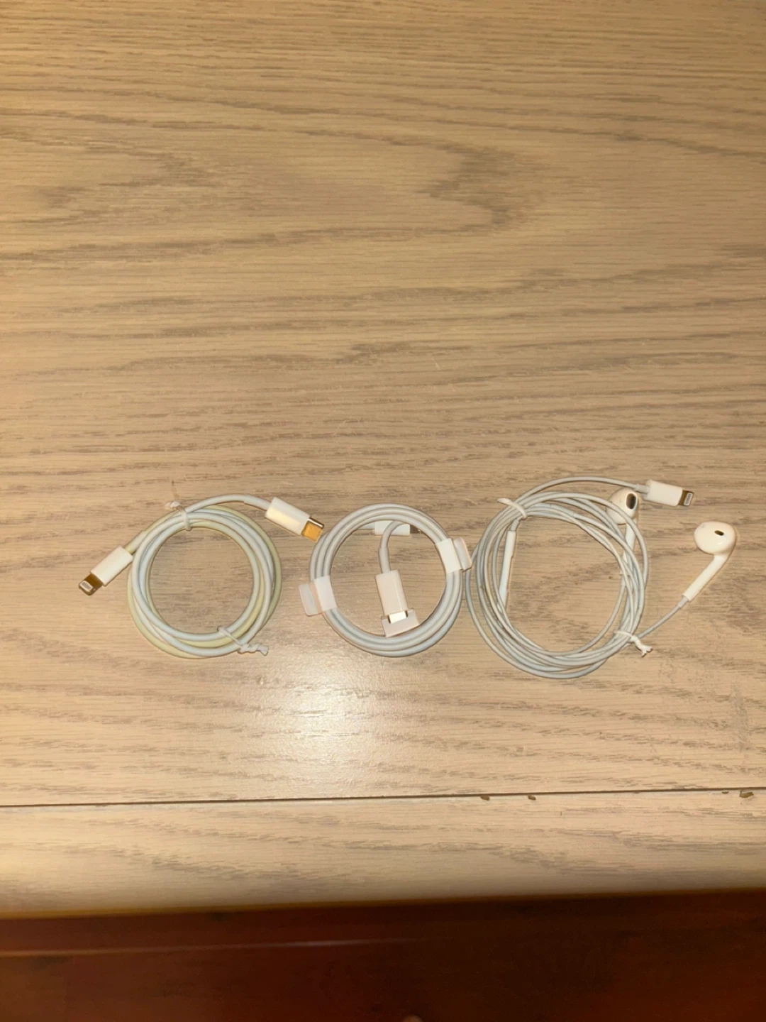 50Selling a collection of Apple accessories! Included are various Lightning and USB-C cables, along with a set of Apple EarPods. They're all new except one usc cable and are all original apple prducts.