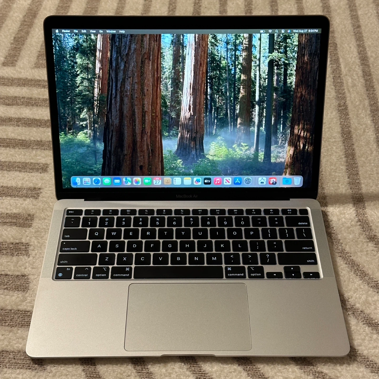 155Apple MacBook Air (2020) - 13 inches Colour: Silver Condition: 9/10 With Box + Charger Processor: Apple M1 Chip Ram: 16 GB Storage: 256 GB SSD OS: MacOS Sequoia 15.0 Battery: 90% Health, Cycle Count: 196 Touch ID Backlit Magic Keyboard Disclaimer: - Only Cash - Only Pickup at 79 Thorncliffe Parkdrive - 6 days checking warranty also