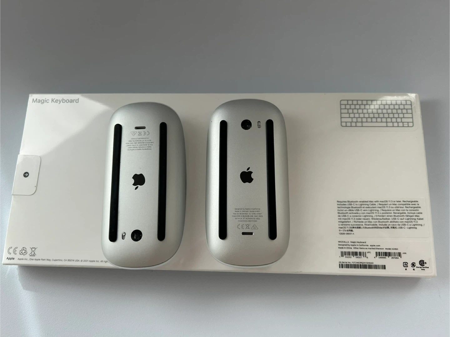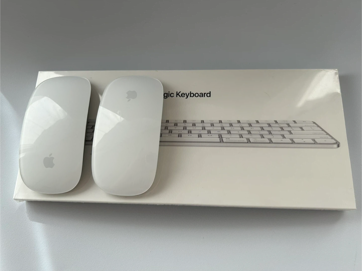 338Cash and pick-up only, thanks! Selling an Apple Magic Mouse and Keyboard set! The box includes a Magic Keyboard in box, and two pre-owned Magic Mouse. 1x Apple MK2A3LL/A Magic Keyboard, Silver (New, In Box) - $131 2x Apple Magic Mouse Perfect for anyone looking for a sleek and functional setup for their Mac or PC! Sales final.