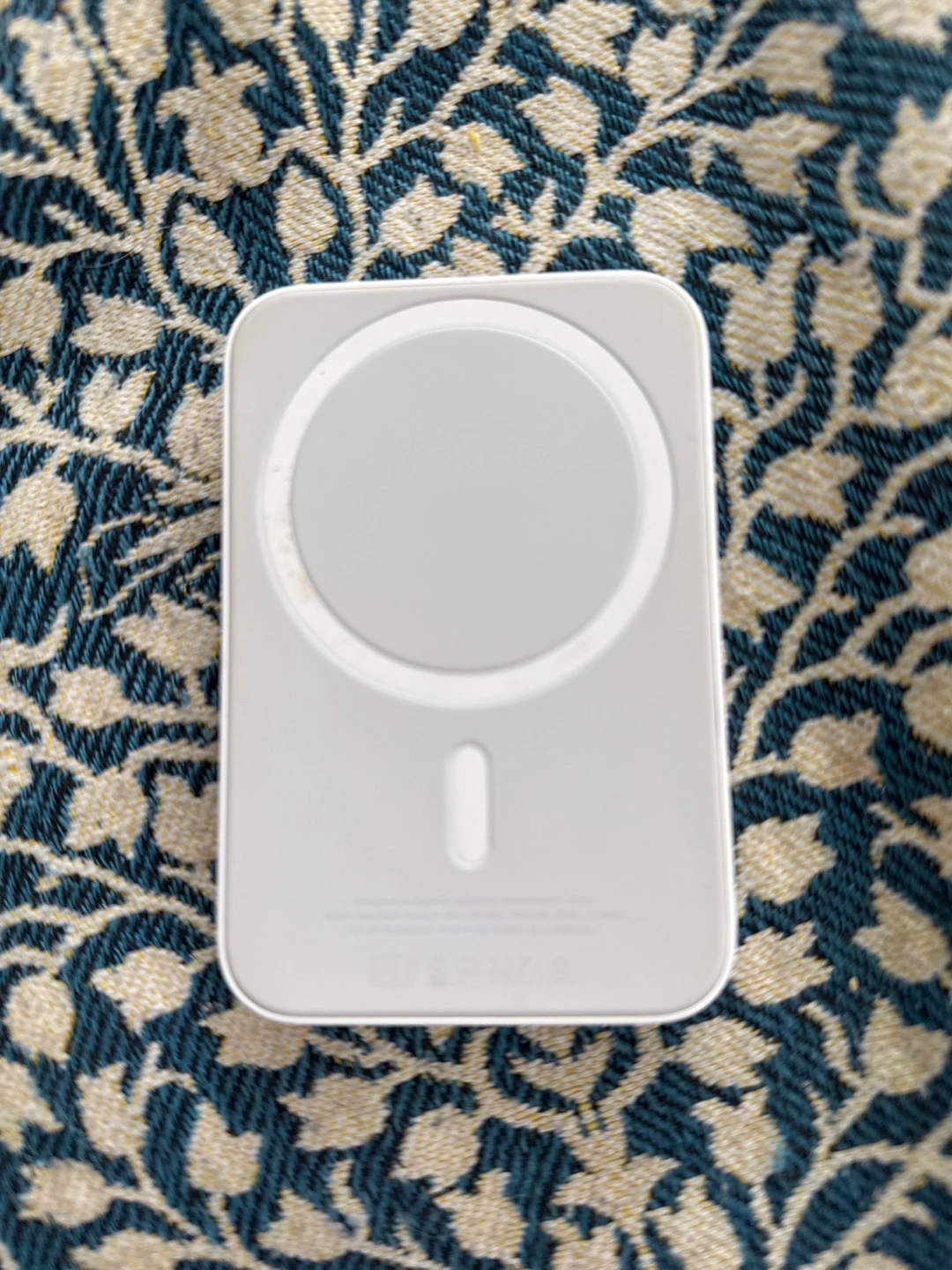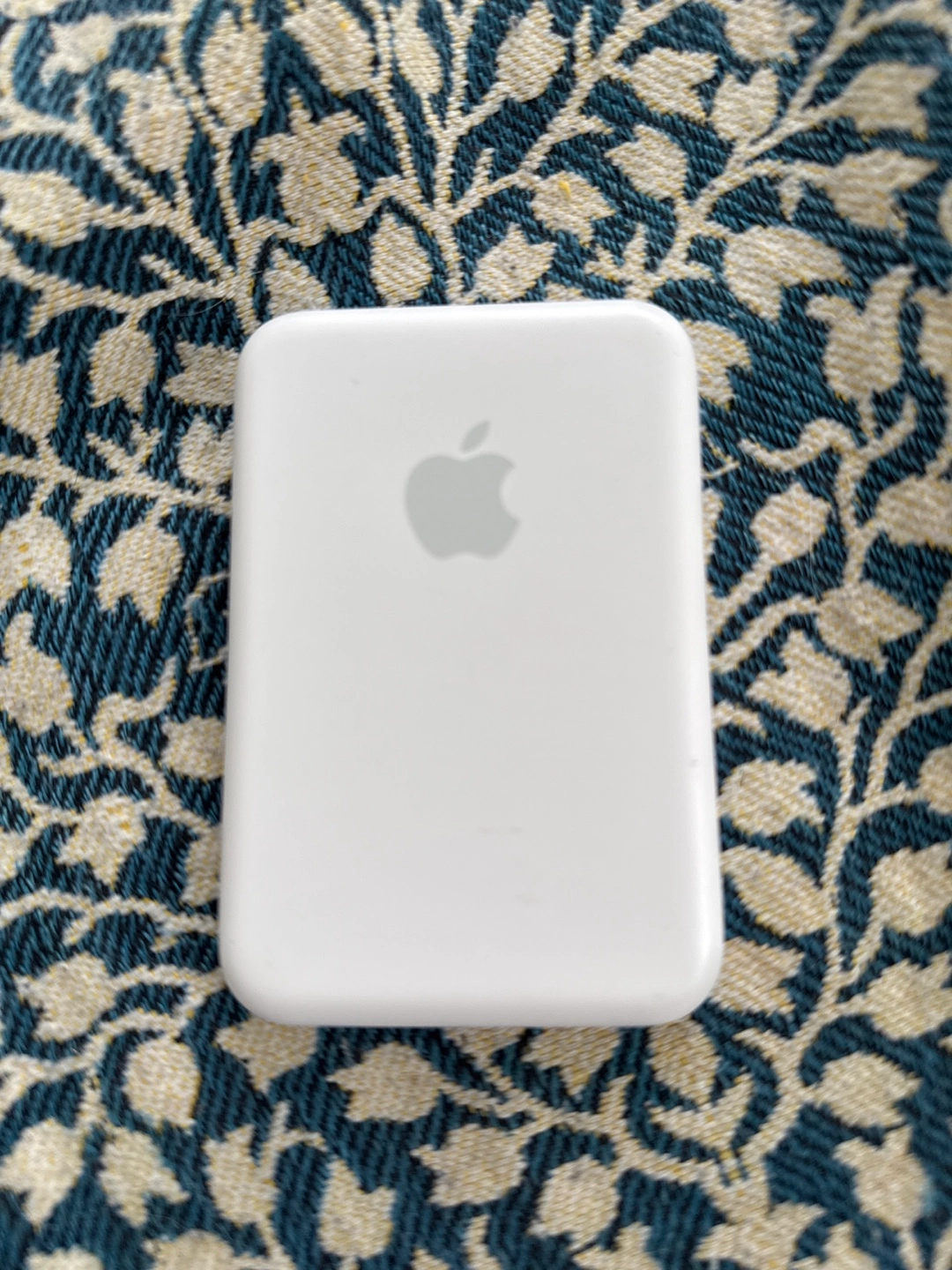 Portable charger for iPhones. Wireless charging. Compact and convenient. White.