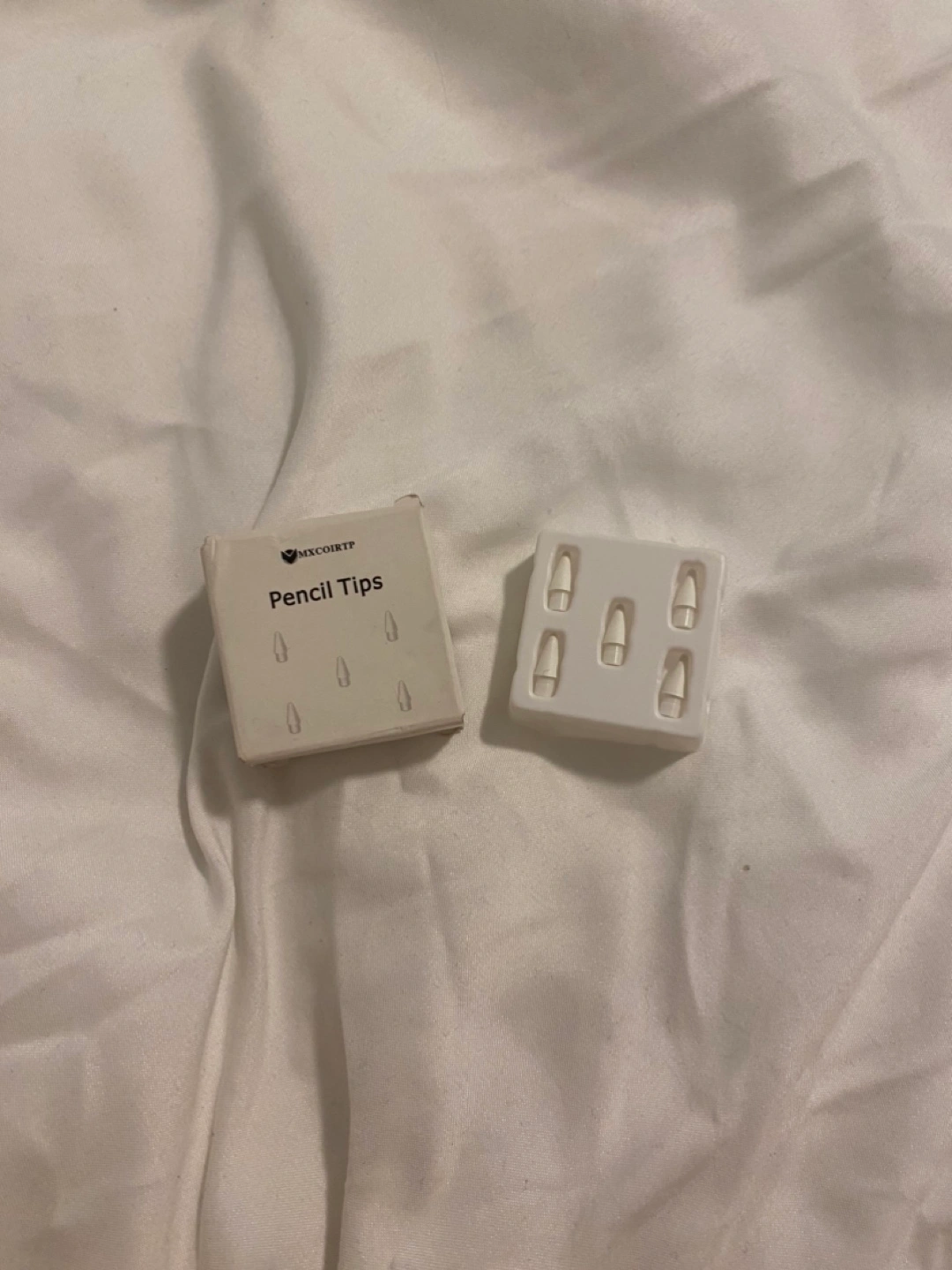 New pencil tips. Six white pencil tips in a plastic case. Comes in original packaging.