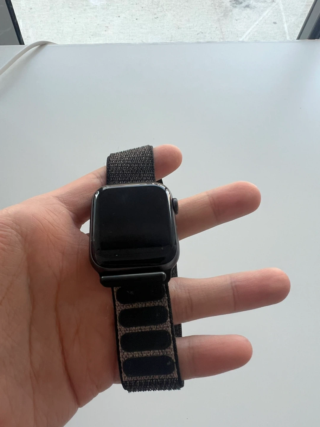 Selling an Apple Watch with a stylish sport loop. It's in great condition and ready for a new wrist! The band is comfortable and perfect for everyday wear or workouts. Barely used with original charger together.