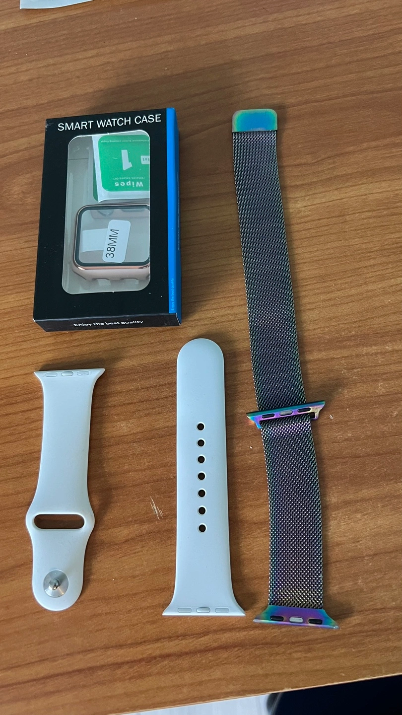 51Apple Watch 38mm band One white silicone bands and one metal band. All are compatible with Apple Watch. Protect case never used Buy each 1 for $1, buy all for $2 Pickup up in Burnaby, no delivery (No Apple Watch 3 includes)