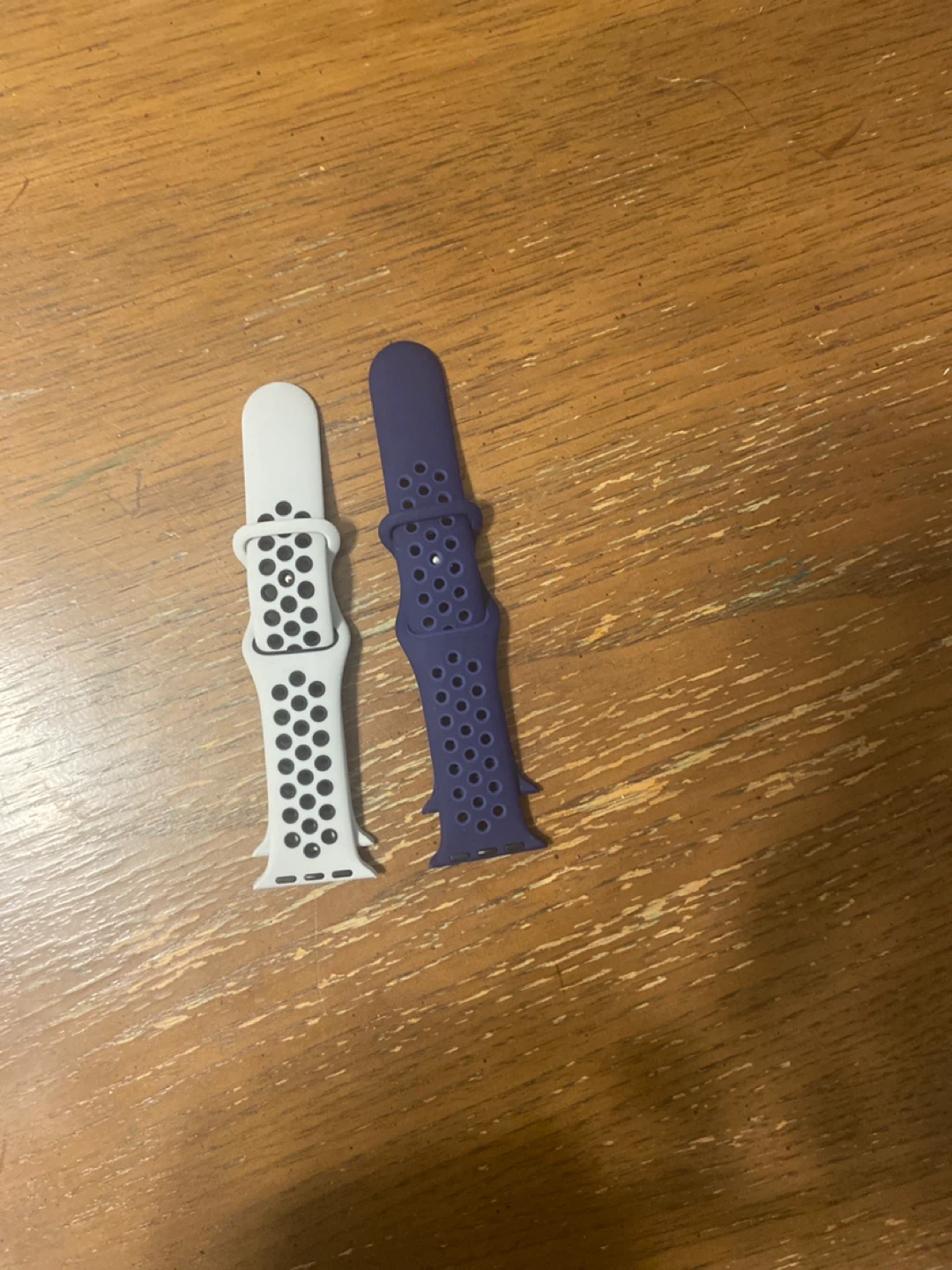 10Selling two Apple Watch bands! One is white with black accents, and the other is a nice dark purple colour. They're in great shape and ready for a new home