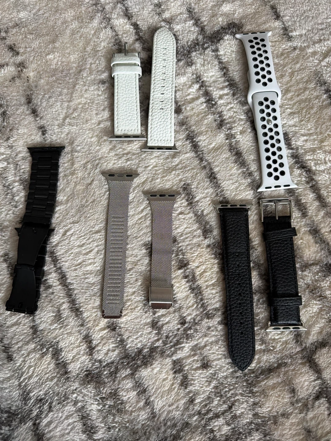 10Selling a collection of Apple Watch bands! There's a mix of styles and materials, including leather, metal mesh, and sport bands. Great for changing up your look! $10 for each