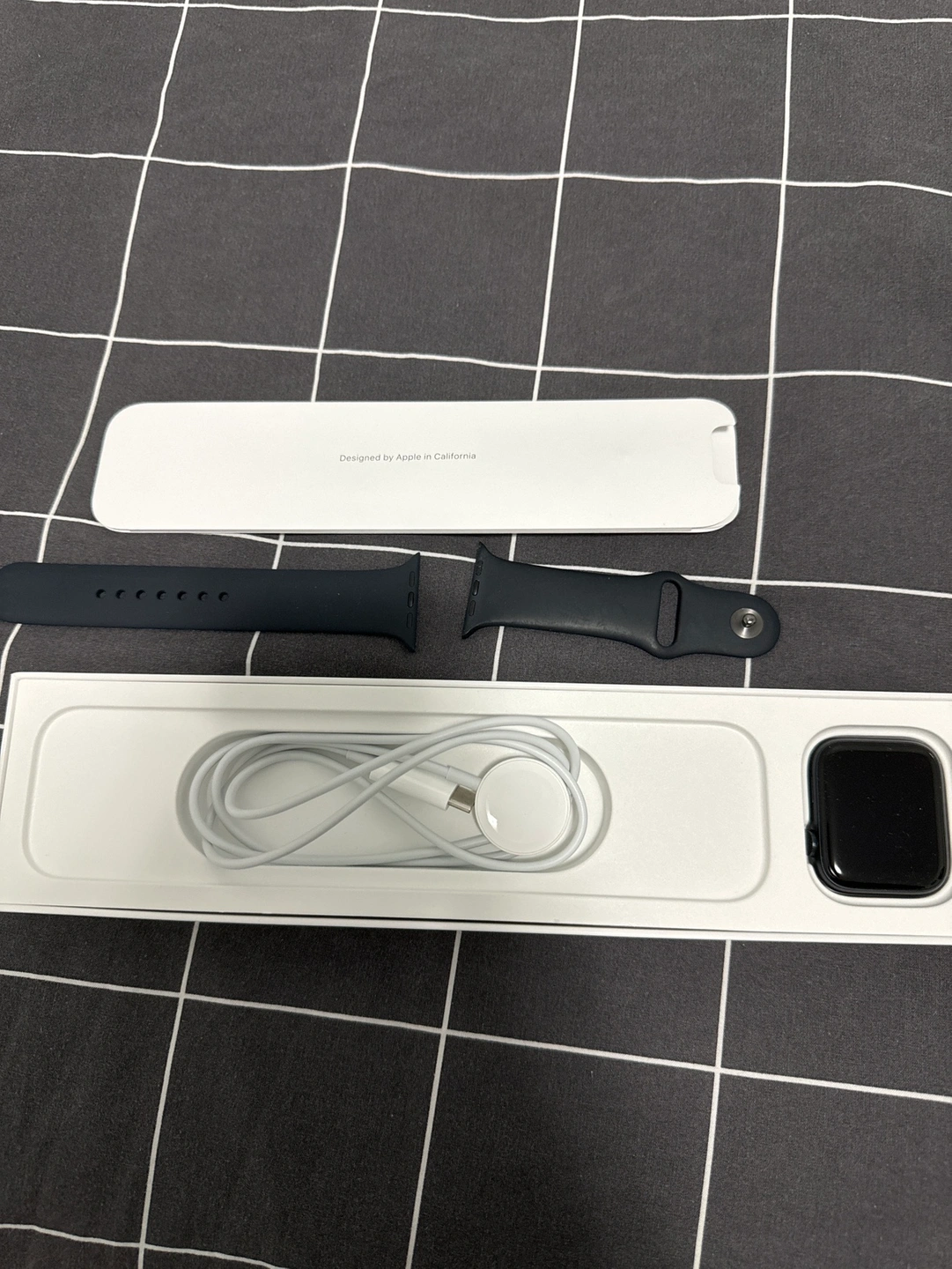Apple Watch SE Series with midnight sport band and additional midnight band. Includes charging cable and box. Like new (barely use) Bought September 2023 No scratch, no damage, still looks juicy Can be negotiable. Thank you