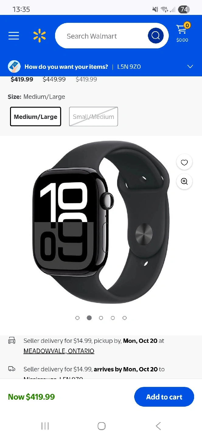 Selling an Apple Watch Series 10 44 inches with a black sport band in size medium/large. Comes with the original box and components. brand new sealed.