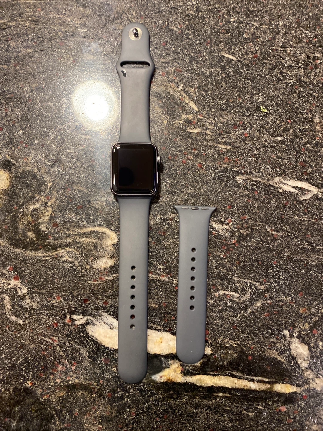 15Selling an Apple Watch Series 3, 38mm in grey. It comes with an extra smaller size band. Ready for a new wrist! Charging cable and plug included. Watch has been reset and Verified Users / iCloud removed so you can set and forget. Can always meet halfway if you’re interested!