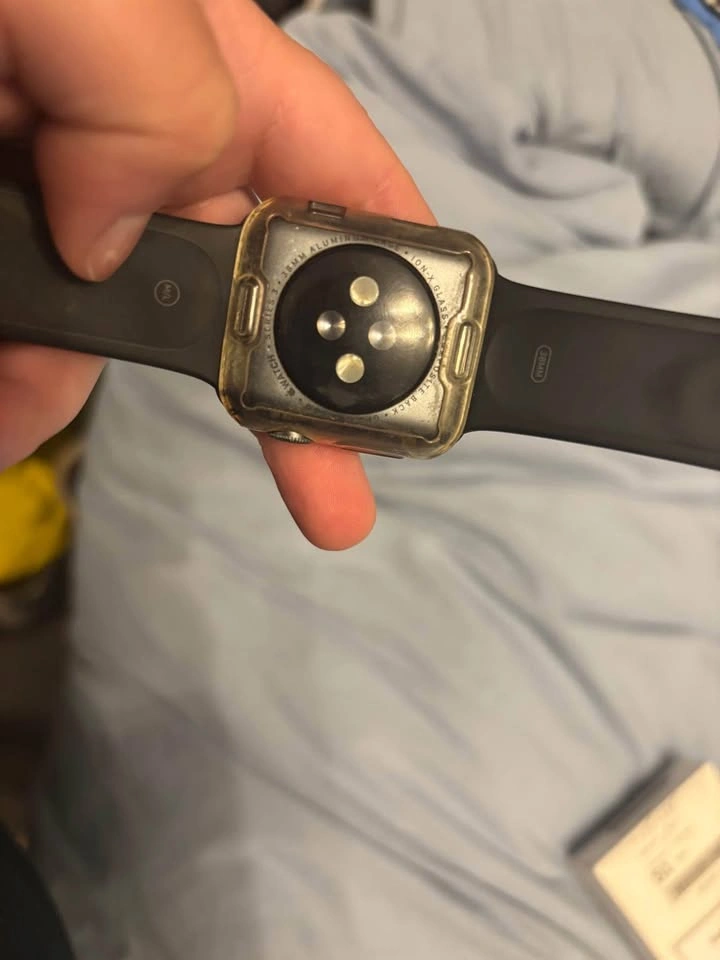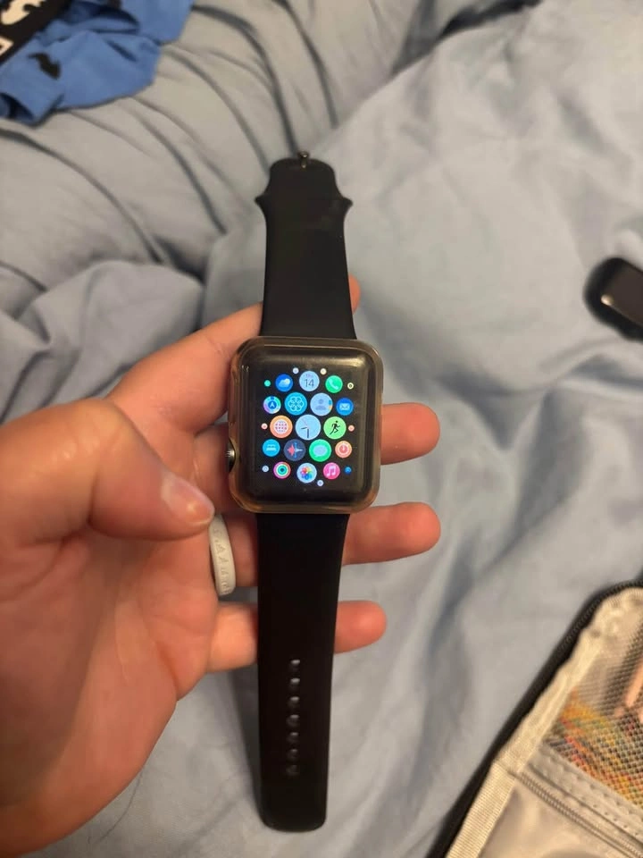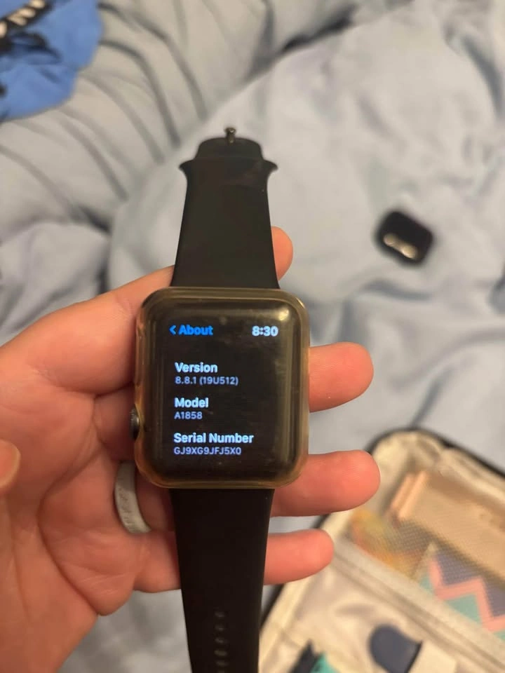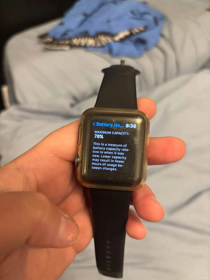 39Apple Watch Series 3 (GPS, 38mm) - Space Grey Aluminium Case with original Apple Black Sport Band used, normal wear and tear has a clear silicone protector on battery health: 78%