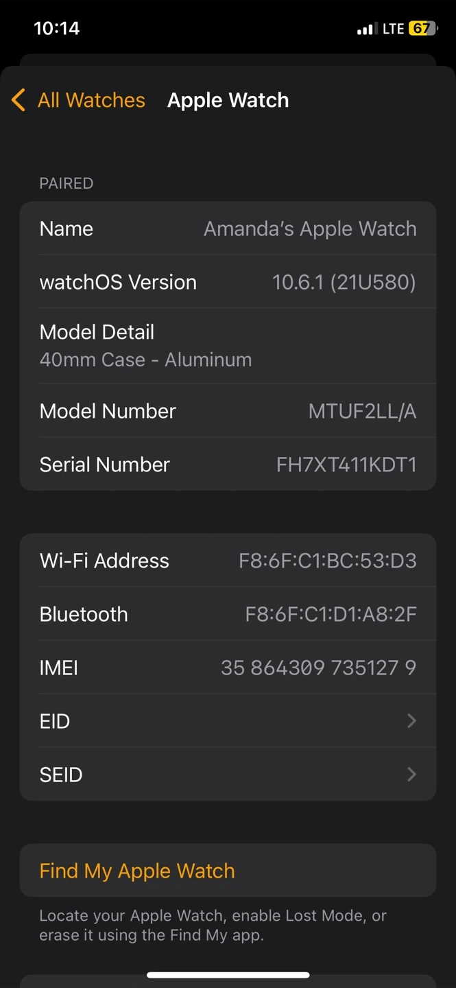 17The frame is silver 40mm 4th series Battery capacity: 70% Got this from wal mart Comes with charger 🔌 I upgraded my watch so this is why I am selling. Pickup only Keele and Sheppard area- can coordinate other meetings spots if feasible. No low ballers- price of firm (low ballers will be ignored)