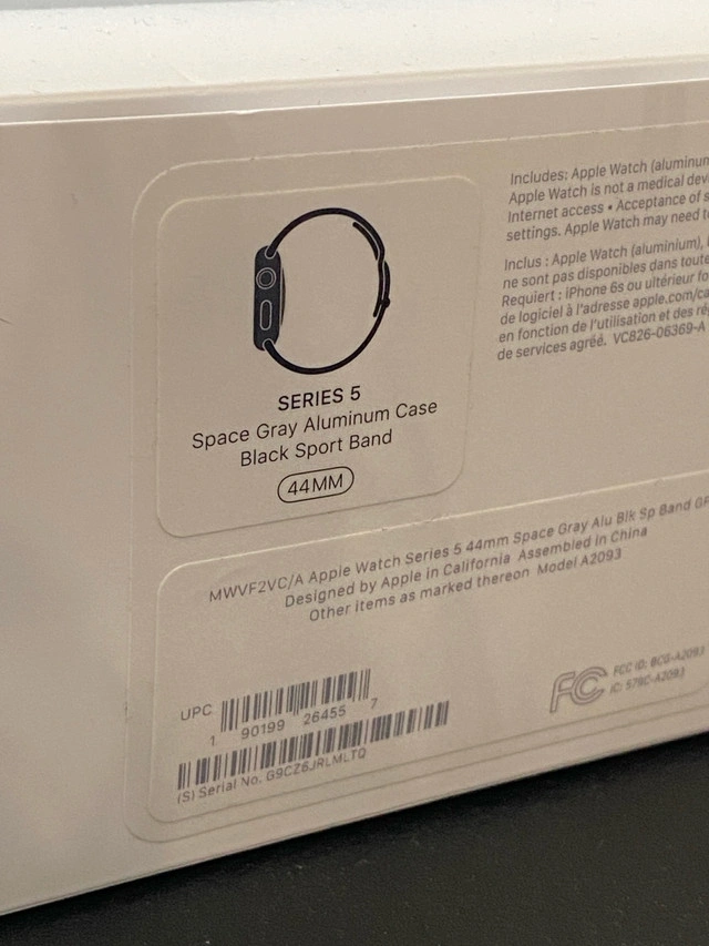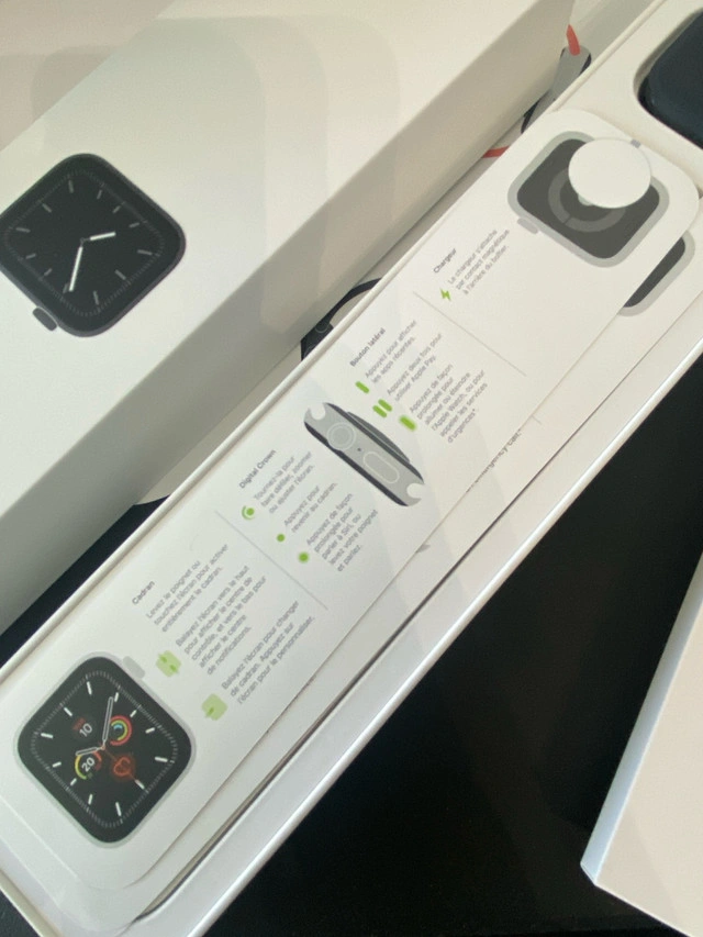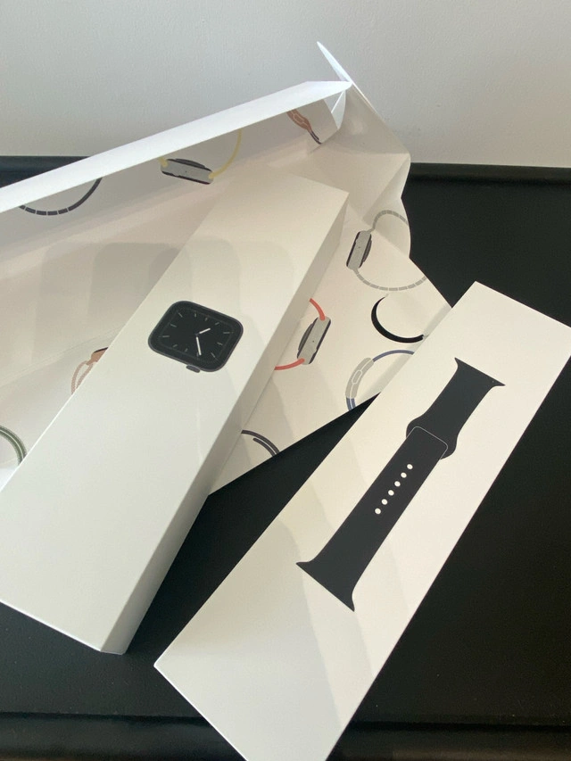 67Brand new, never used Apple Watch Series 5 – 44 mm Space Grey Aluminum case with Black Sport Band. Model: Apple Watch Series 5, 44 mm case size, Space Grey Aluminum finish, includes original Black Sport Band. Condition: Brand new, still in original packaging — untouched. Features: Always-On Retina display, GPS, heart sensors including ECG, fall detection, swim-proof design, etc. Location: pick up only at Jane and highway seven condos. Payment: Cash or e-transfer only. For Sale By: Owner