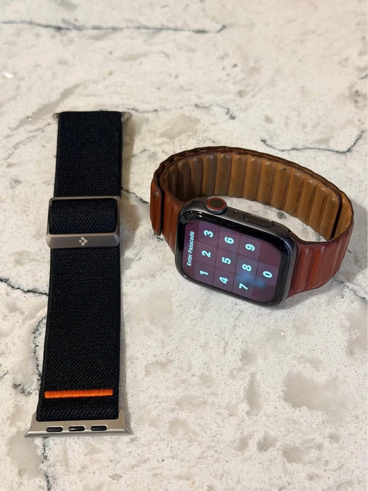 Apple Watch Series 5 (with Apple Leather Loop) 44mm Case Aluminum. Features: Cellular Version (you can add watch plan with your provider). WatchOS Version: 10.6.1 (21U580) *LATEST*. Other features: make and receive calls, send texts, access apps, emergency call detection, SOS, stream music etc. Covered with AppleCare+ until recently. Extra Spigen Adjustable Sports Loop available at no cost. Meetup Locations: Meet at a cafe / nearest skytrain station. Preferred Areas: Vancouver, Burnaby