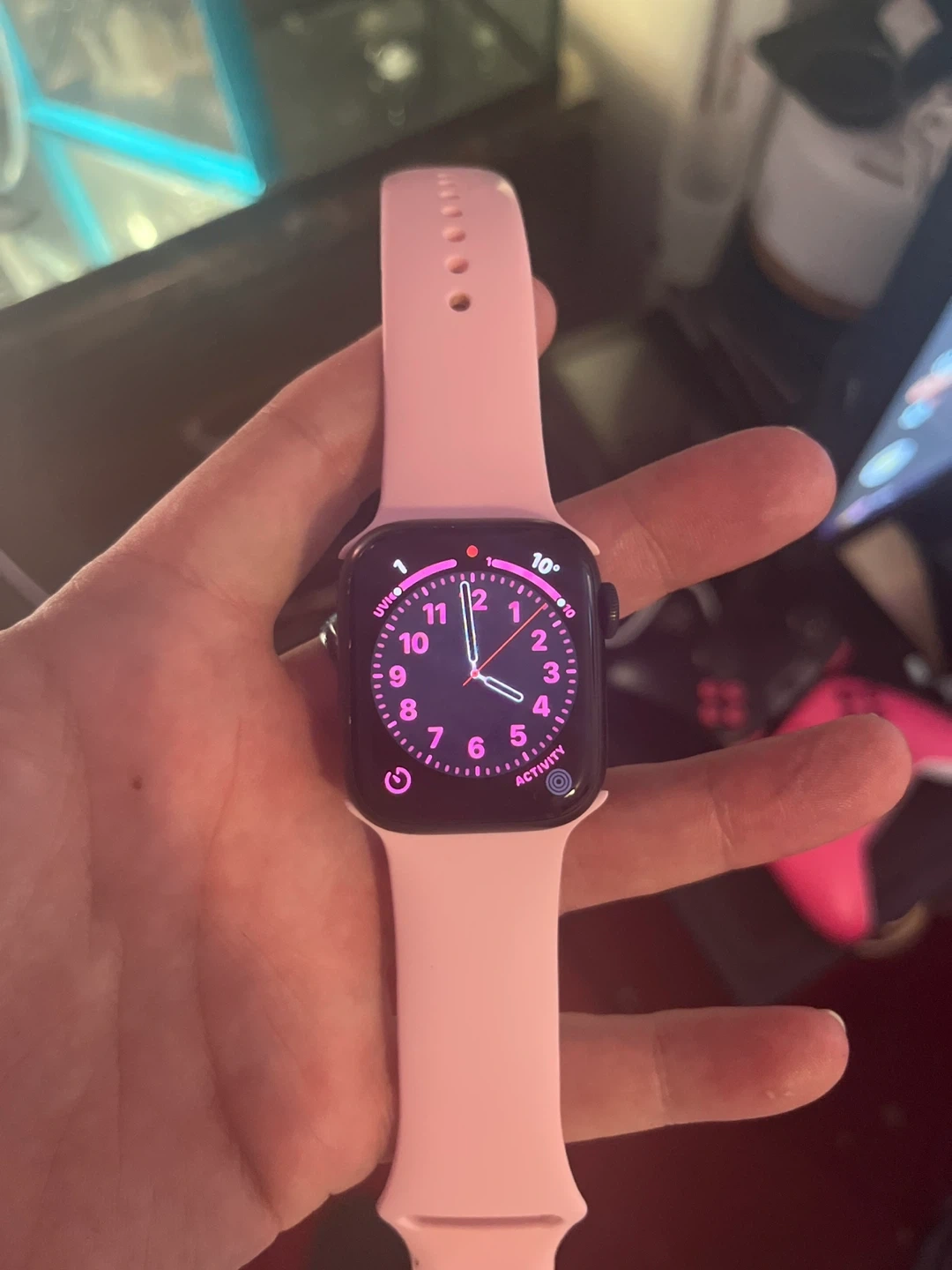245Selling an Apple Watch with a pretty pink band! It's in great shape and ready for a new wrist. The watch face is clear and easy to read, perfect for keeping track of your day and activities. Battery health is 97% Unlocked. It’s mine. Bought it new. Have a green band as well