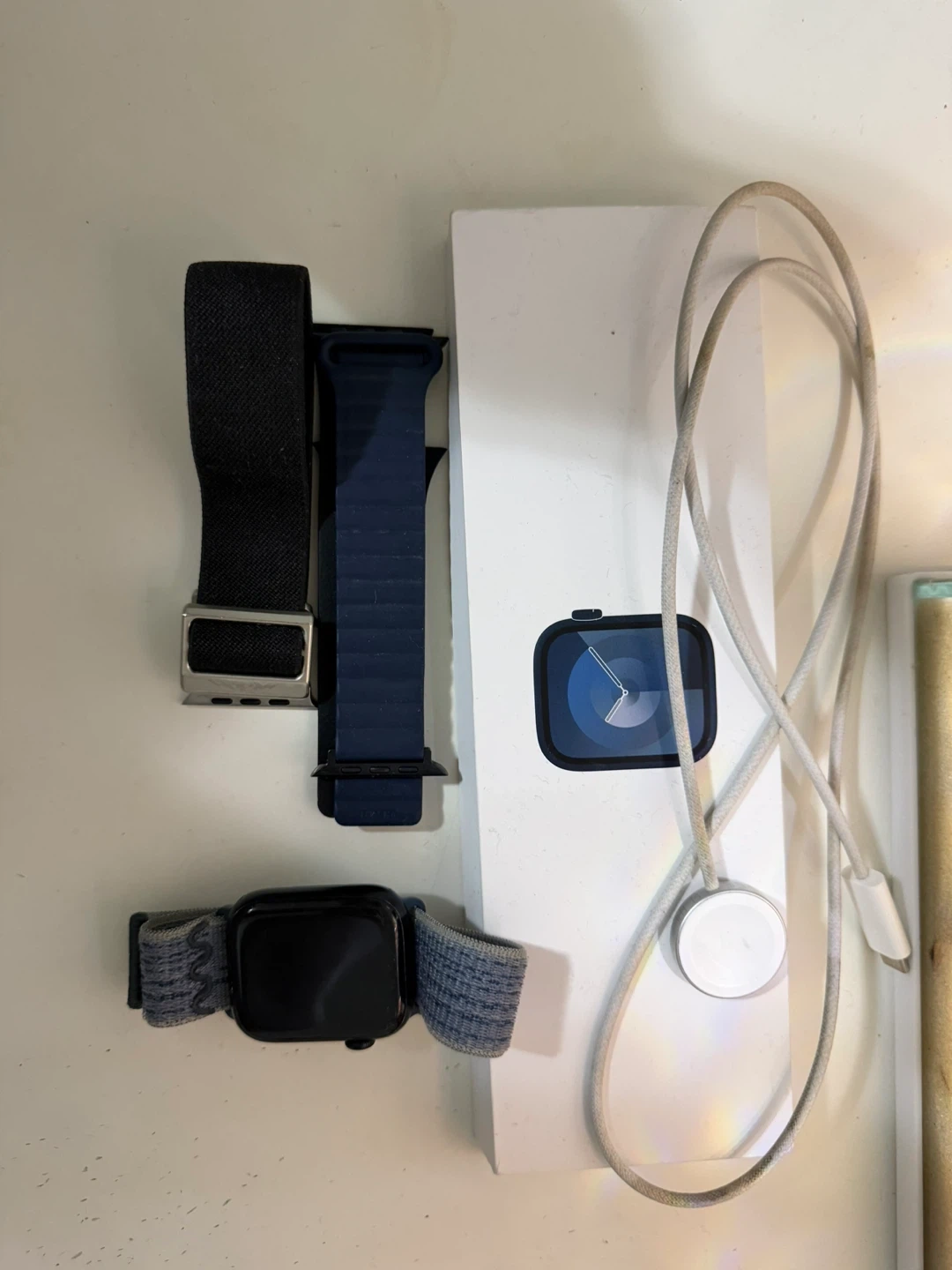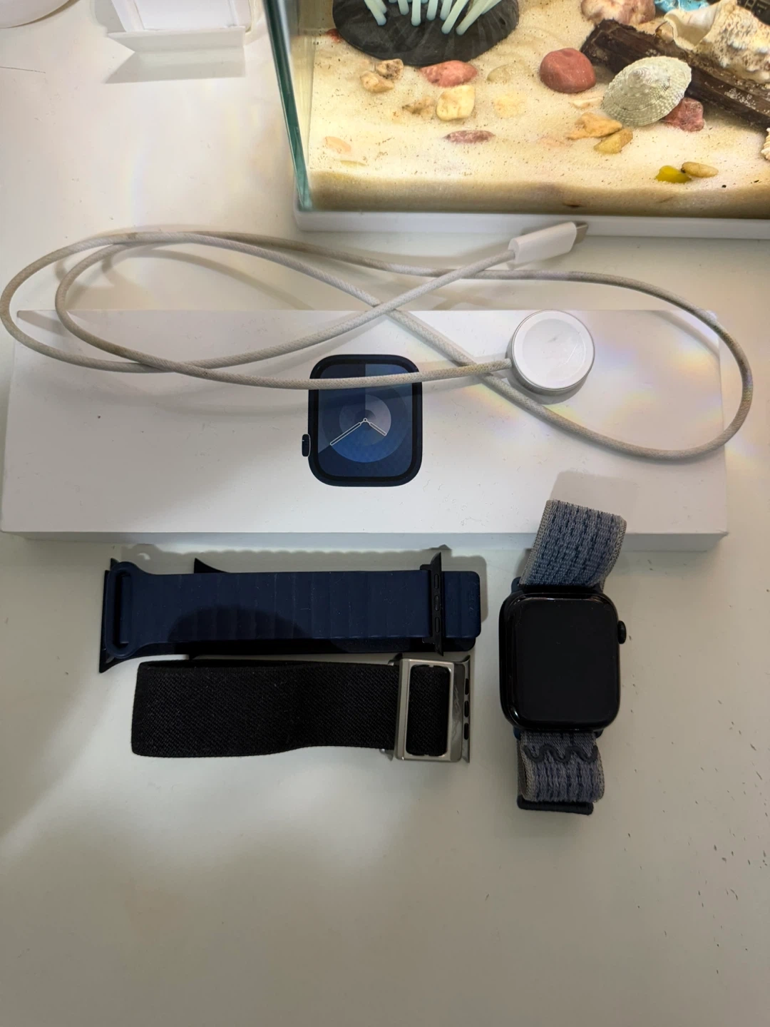 65Selling an Apple Watch Series 9 (GPS) with a 45mm aluminum case covered in apple care Comes with the original box and charger Also includes a variety of bands to switch up your style Model number: MR9A3CL/A