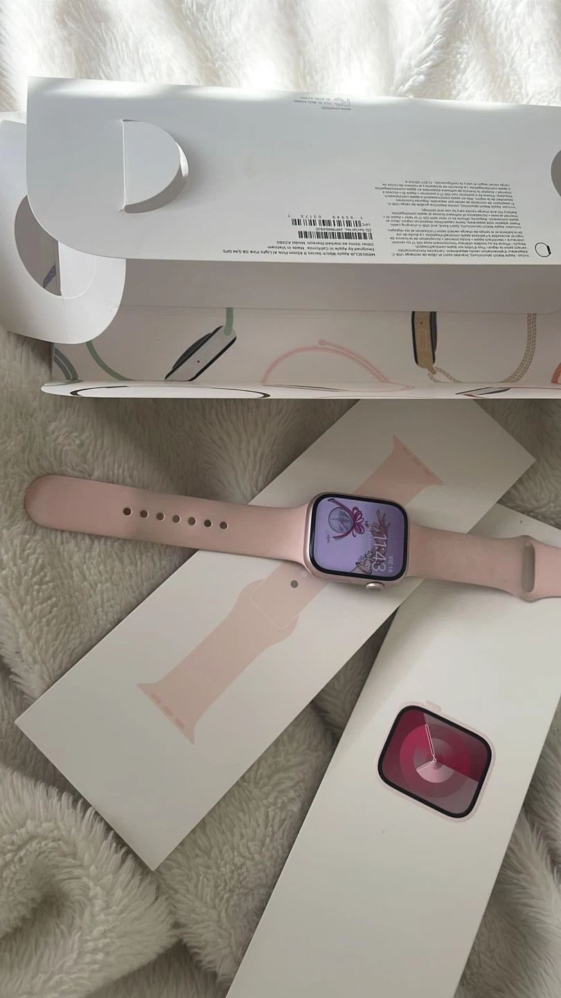 Selling an Apple Watch Series 9 in the lovely pink sand colour! It comes with the original box. It's in great condition and ready for a new home! Battery health 98%